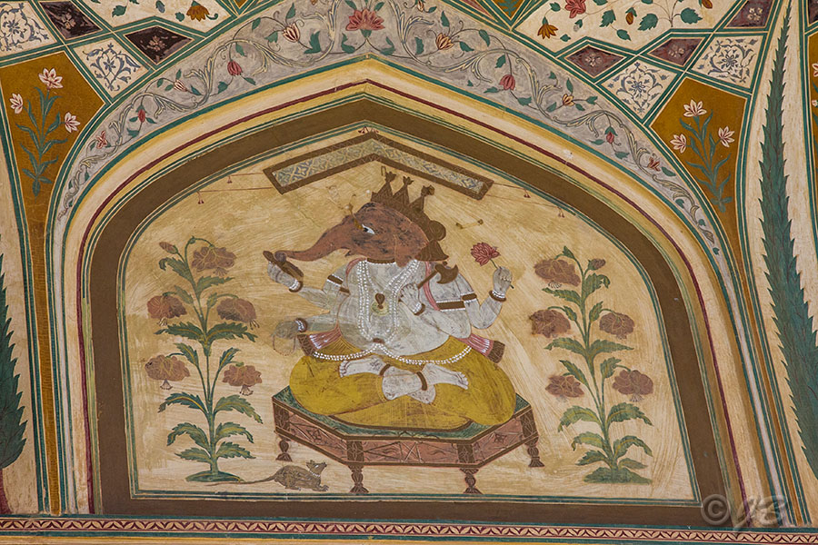 Freske mit Ganesha-Gott im Amber- Fort Jaipur