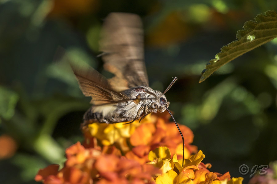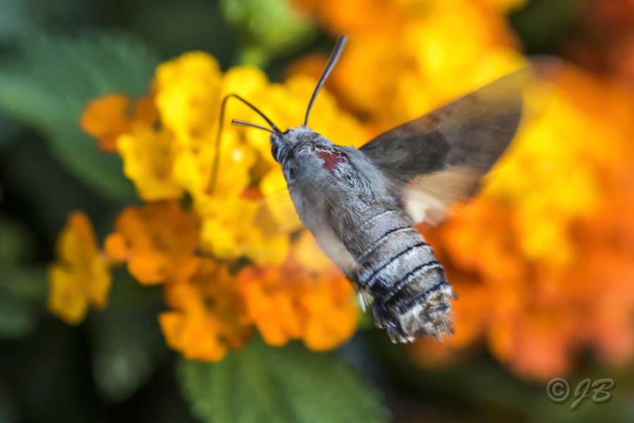 Taubenschwänzchen (Macroglossum stellatarum) auf Wandelröschen