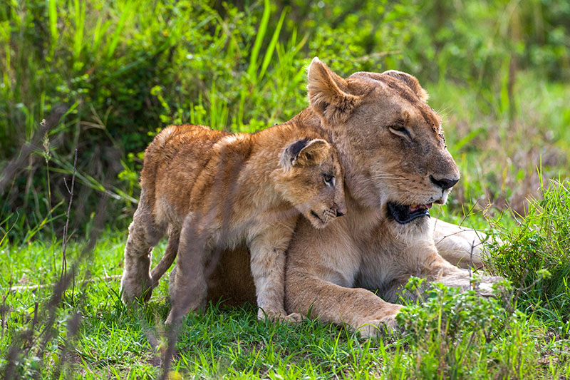 Löwin (Panthera leo) Mutterliebe