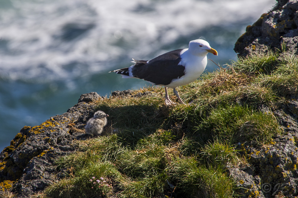 Mantelmöwe (Larus marinus) mit Baby