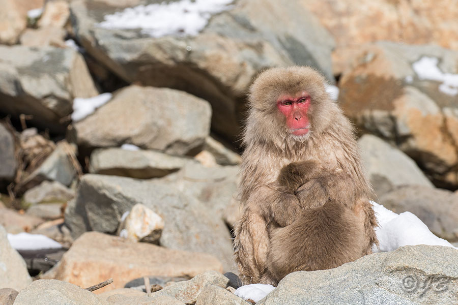 Japanmakake, Schneeaffe, Rotgesichtsmakake (Macaca fuscata)