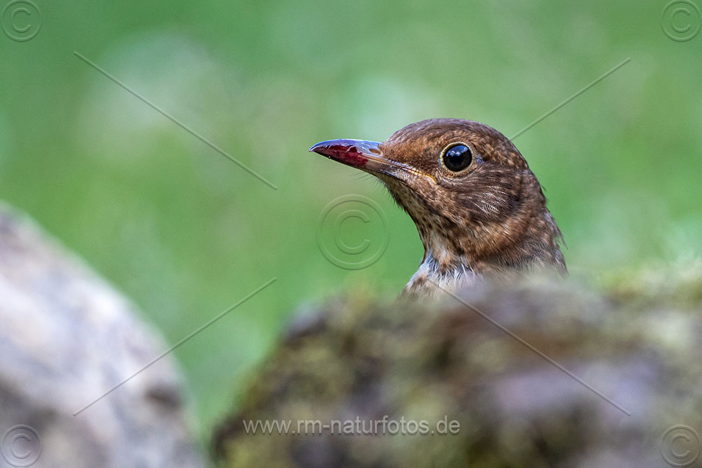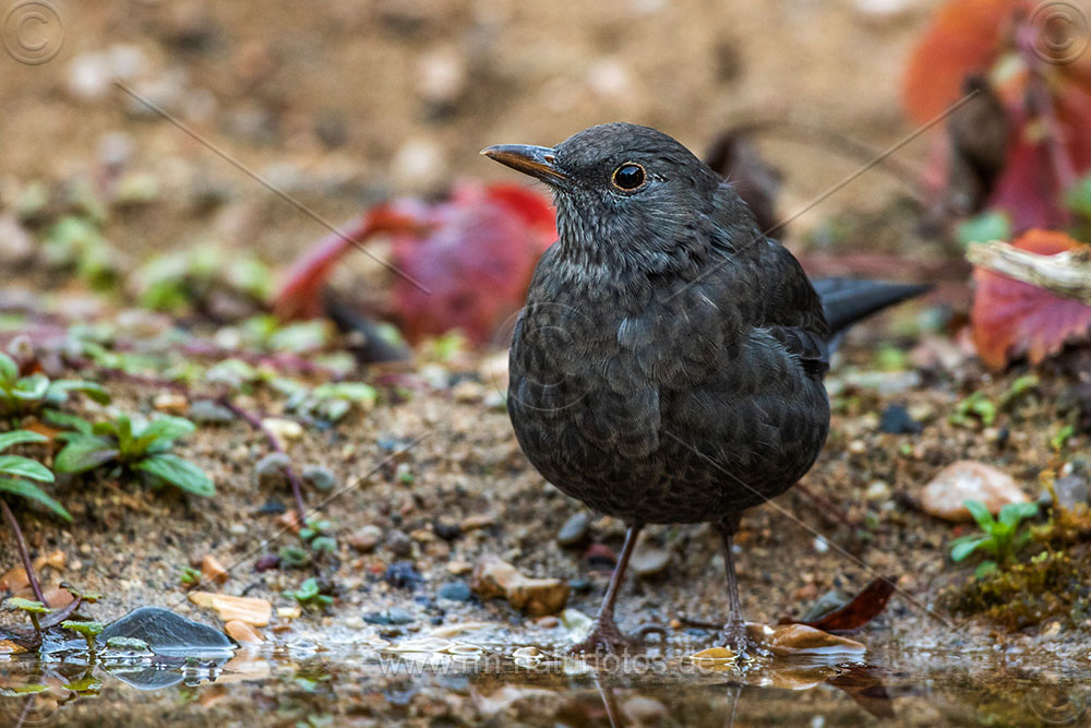 Amsel (Turdus merula) Weibchen mit Nistmaterial
