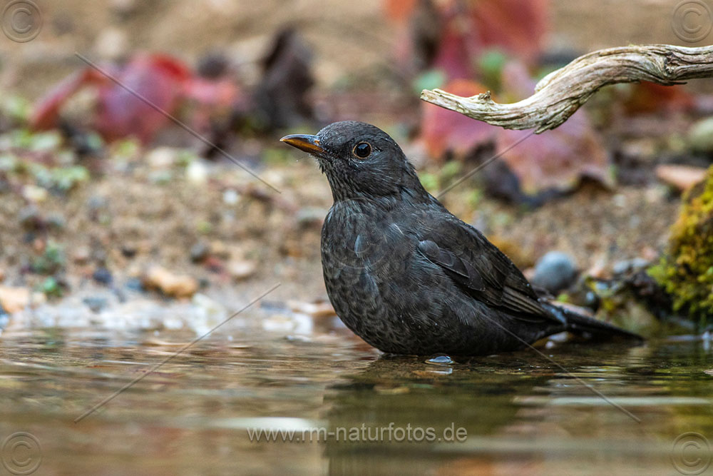 Amsel (Turdus merula) Weibchen an einem Apfel
