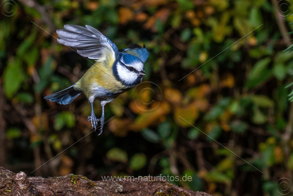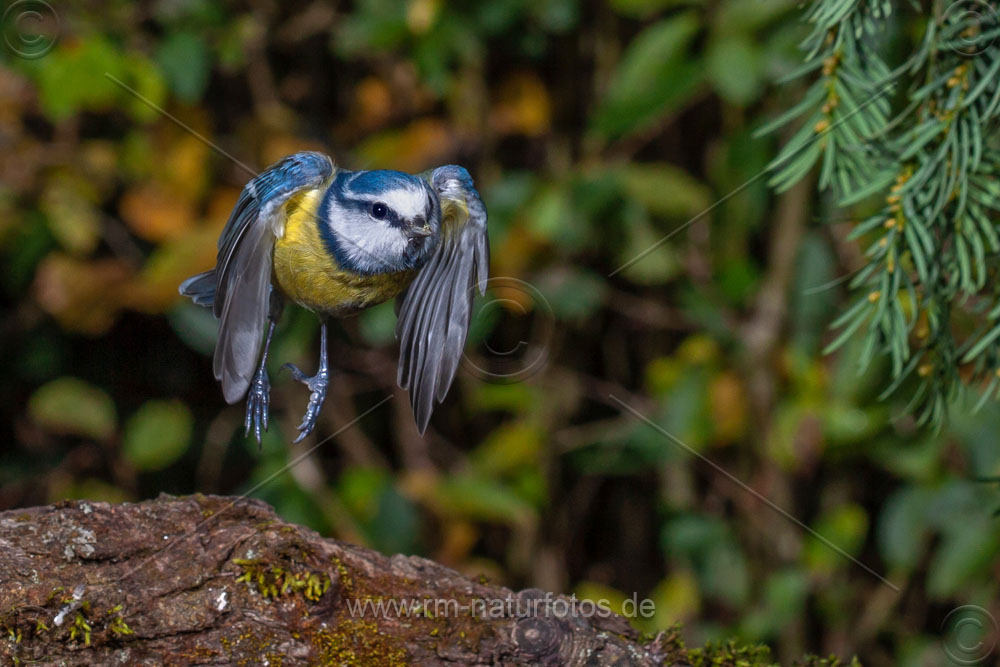 Blaumeise (Cyanistes caeruleus) beim Landeanflug