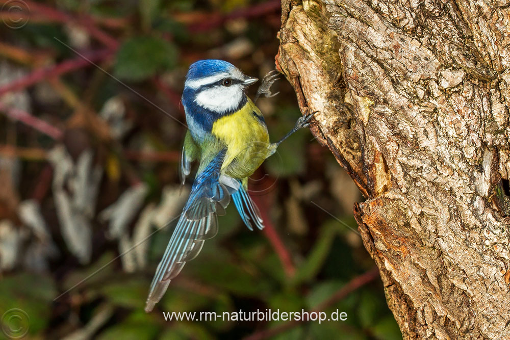Blaumeise (Cyanistes caeruleus) holt sich Samen