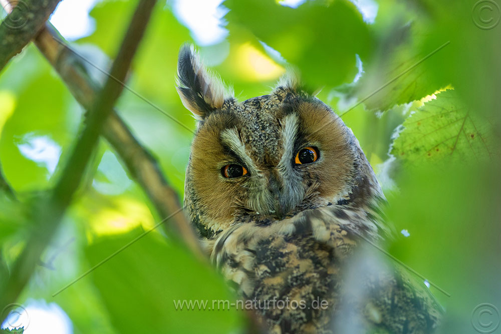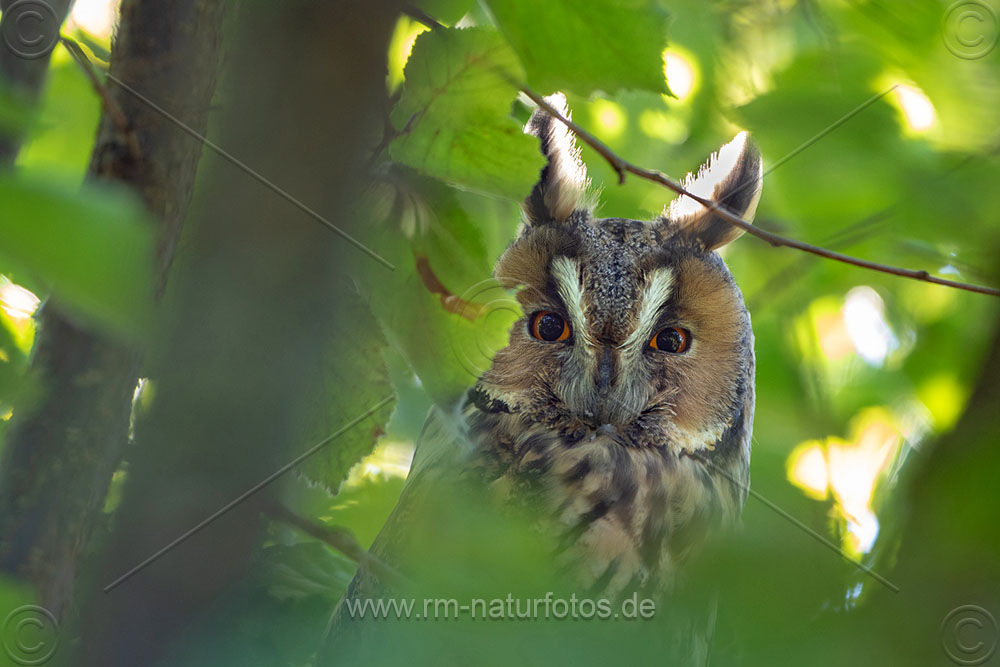 Waldohreule (Asio otus) (Panoramaaufnahme mit 3 Bildern)