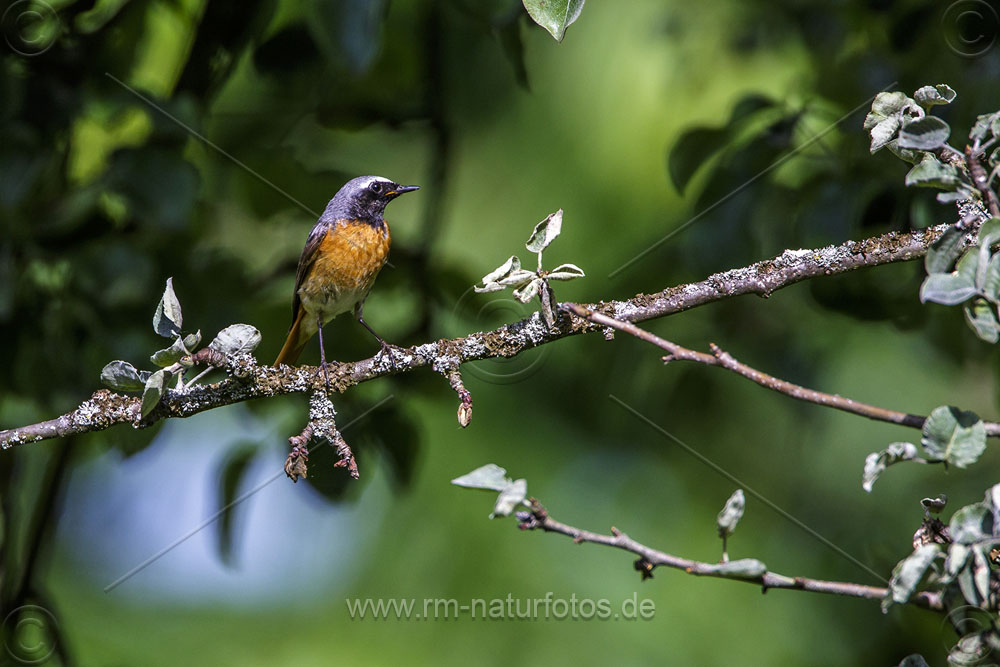 Gartenrotschwanz (Phoenicurus phoenicurus) Männchen in Kirschbaum