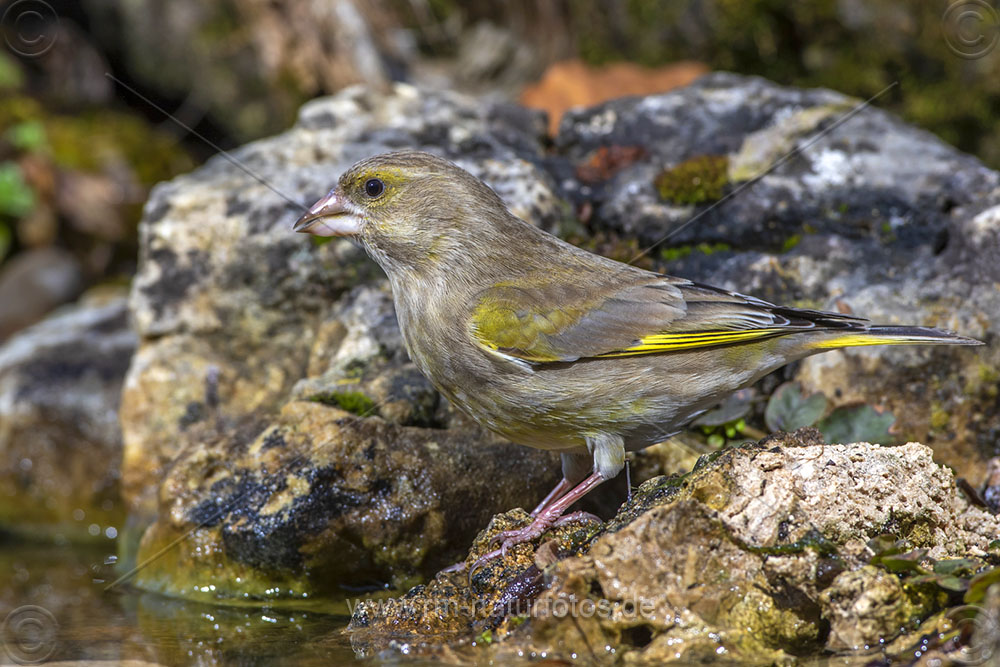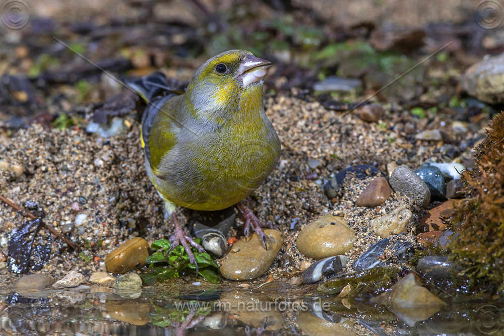 Grünfink (Carduelis chloris) an Wasserstelle