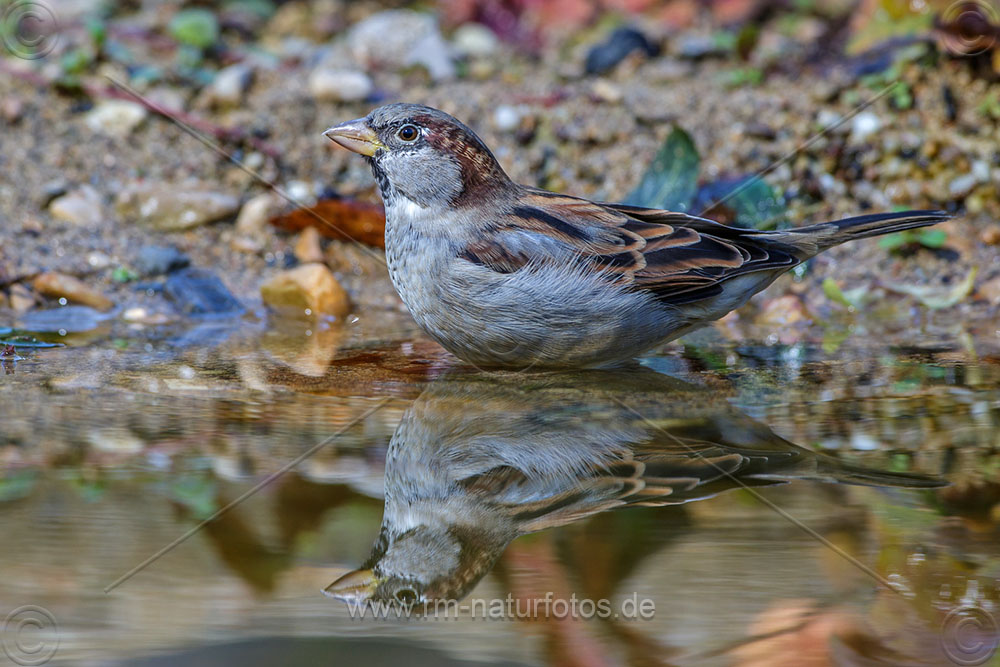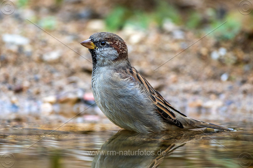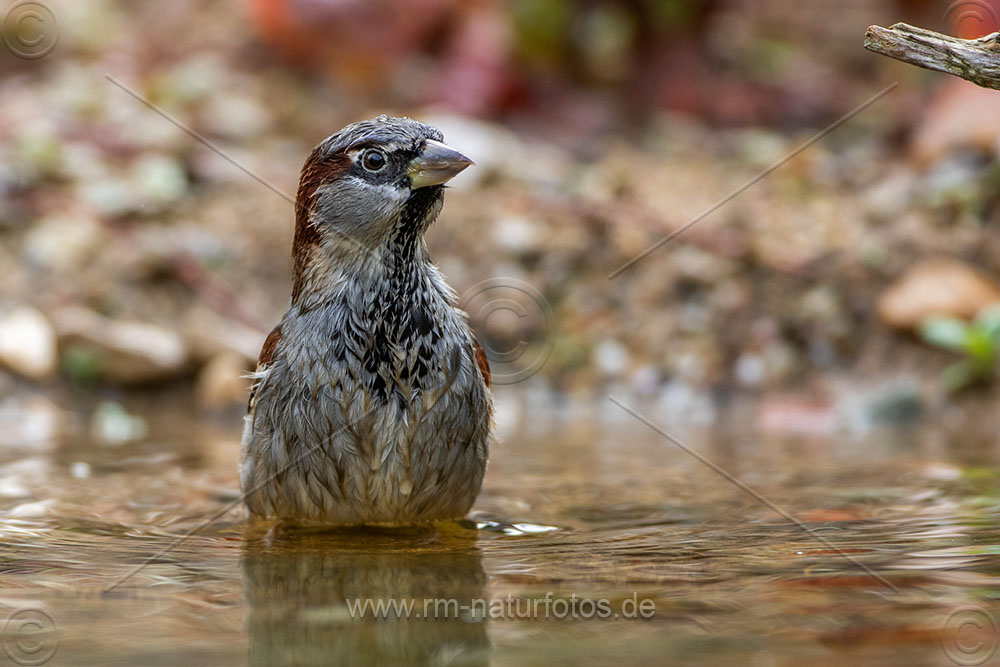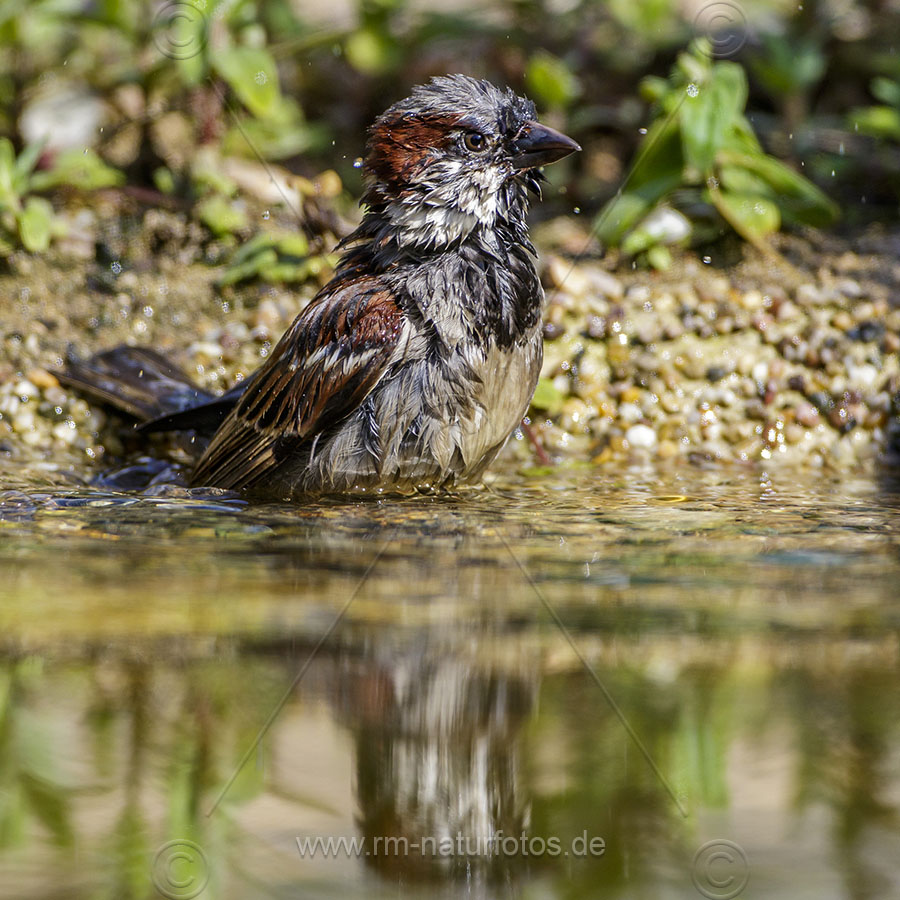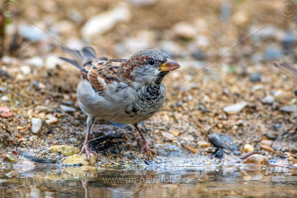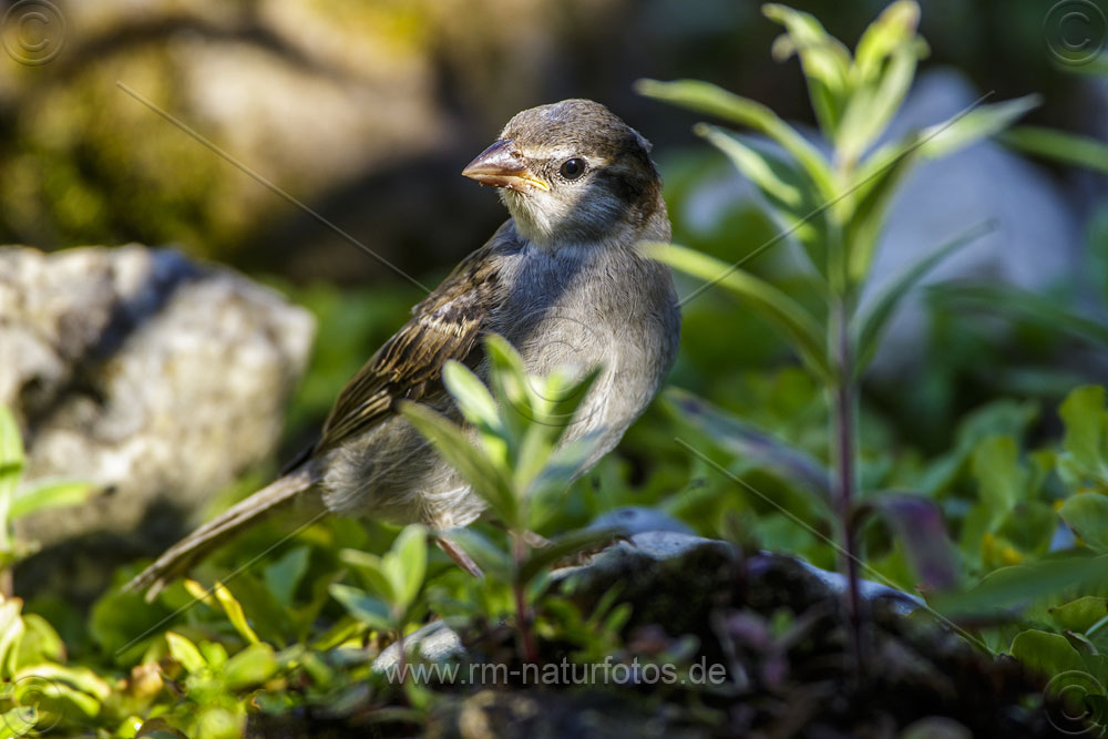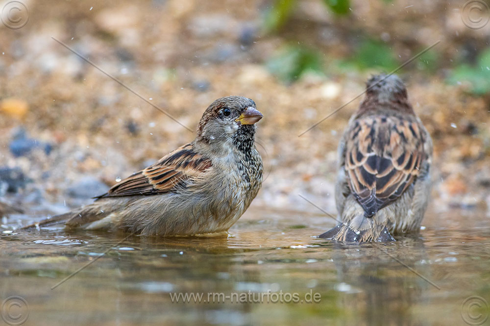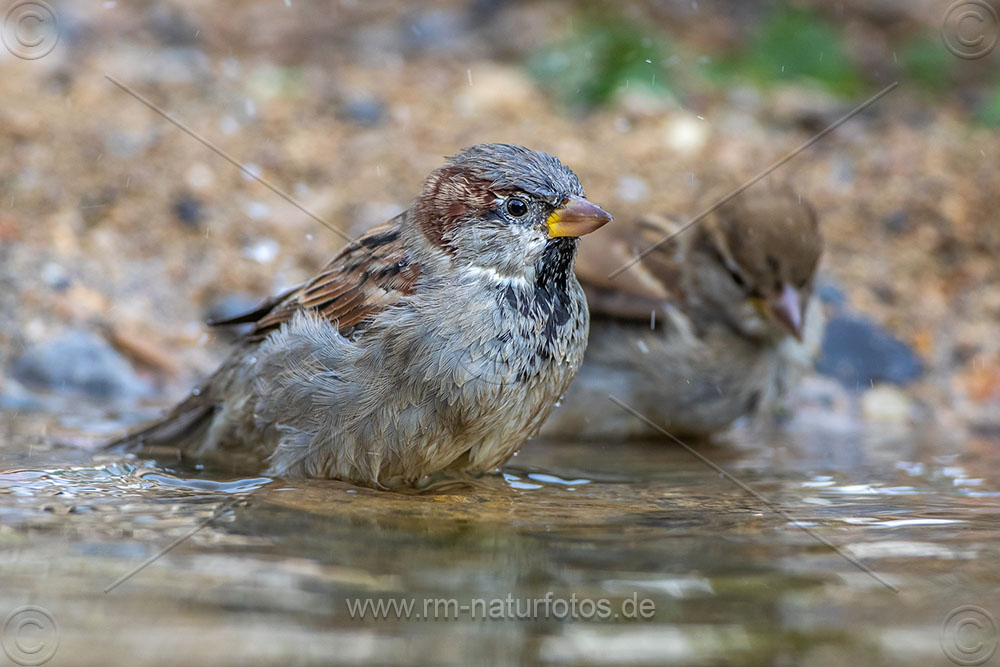 Haussperling (Passer domesticus) Männchen und Mönchsgrasmücke