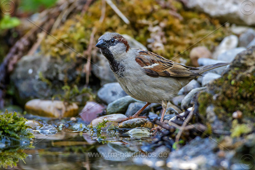 Haussperling (Passer domesticus) badendes Männchen
