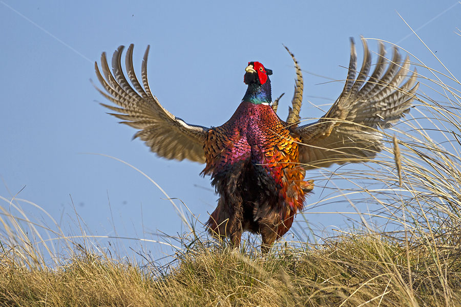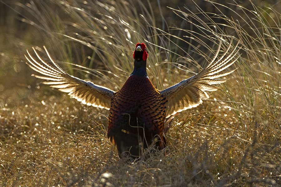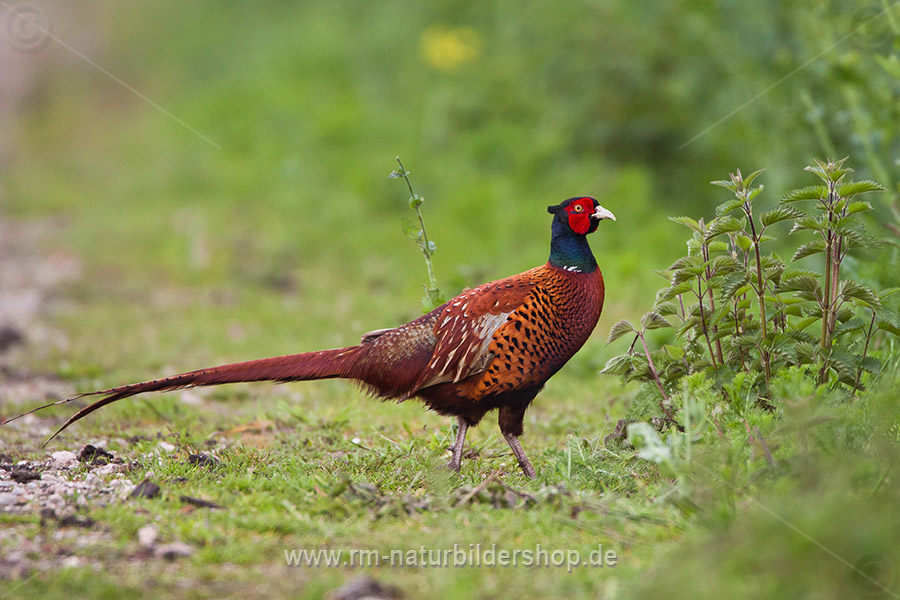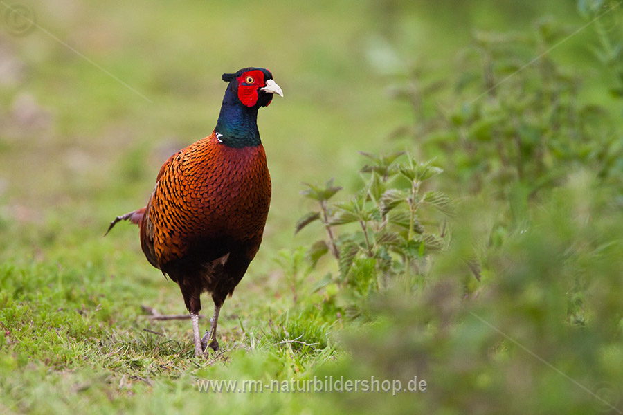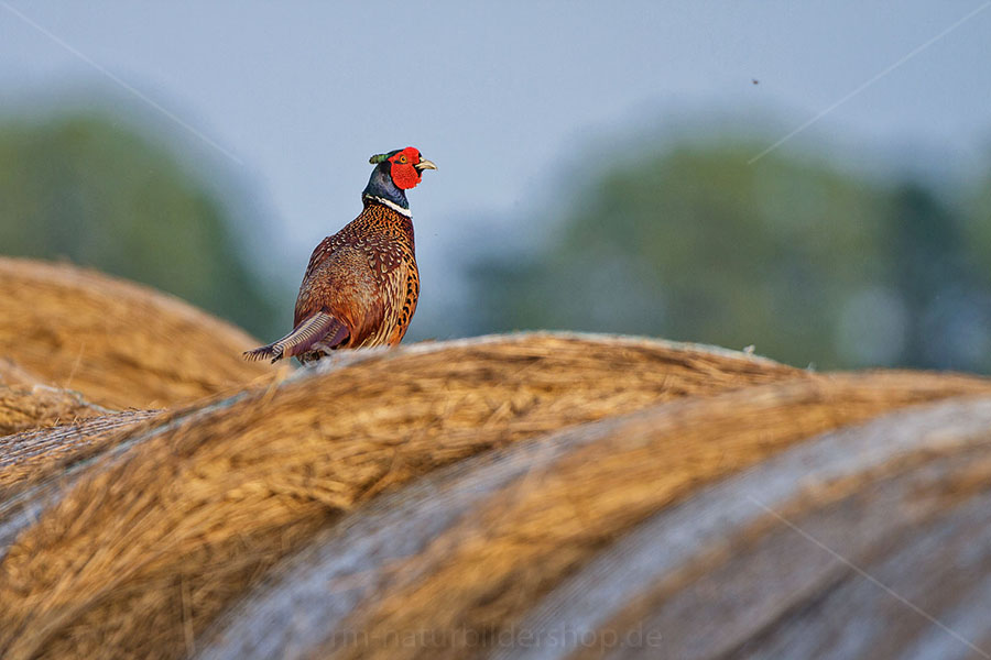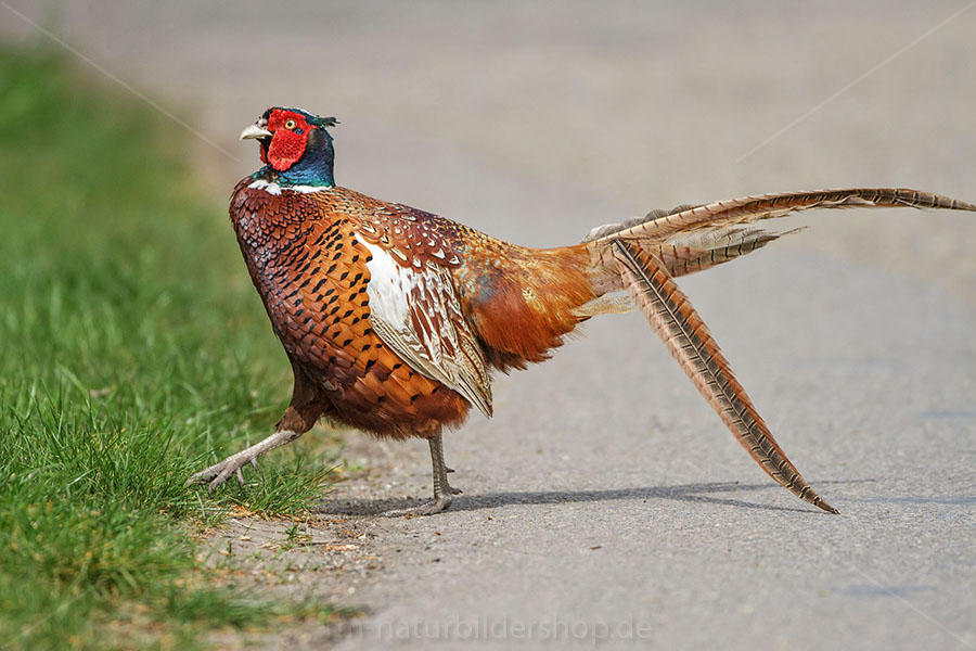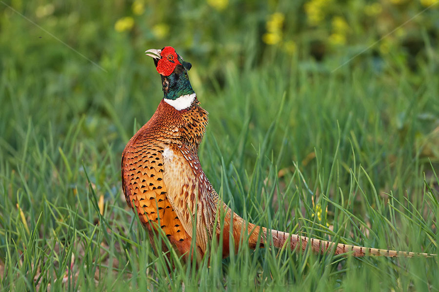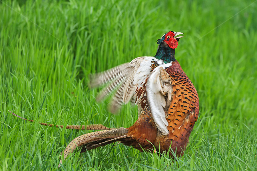 1402215 - Fasan (Phasianus colchicus) Männchen beim Balzruf