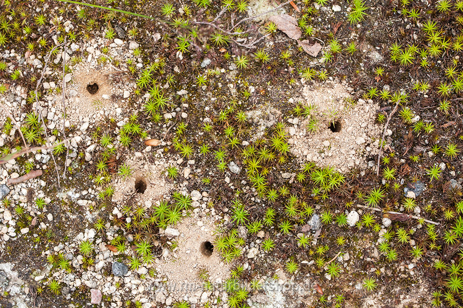 Nestgänge der Sandknotenwespe (Cerceris arenaria) auf einer Sandfläche