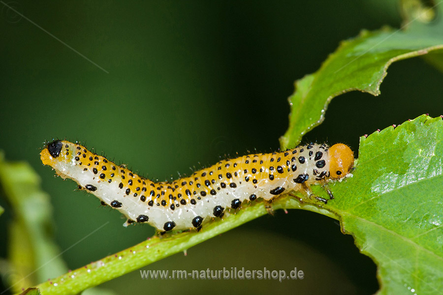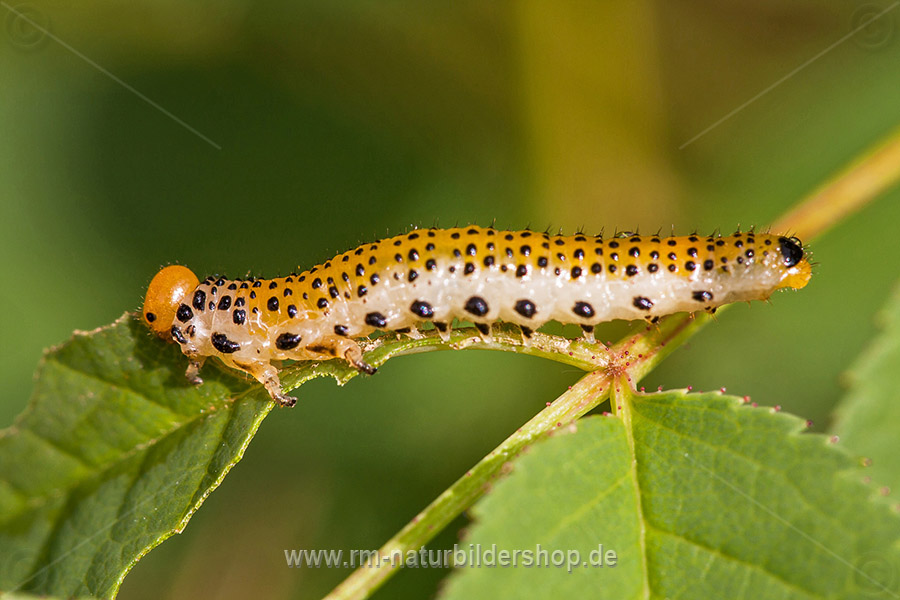 Blauschwarze Rosenbürstenhornblattwespe (Arge pagana) Larve