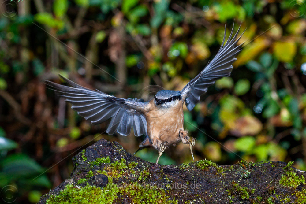 Kleiber (Sitta europaea) bei der Landung