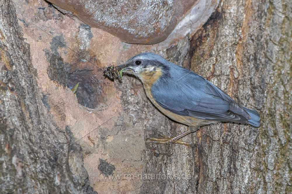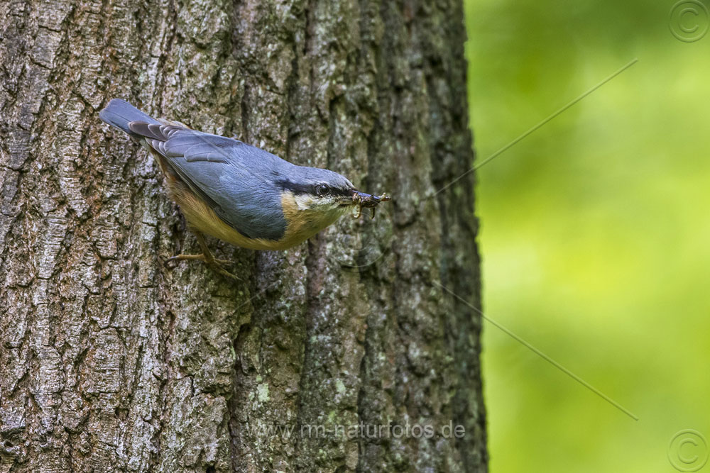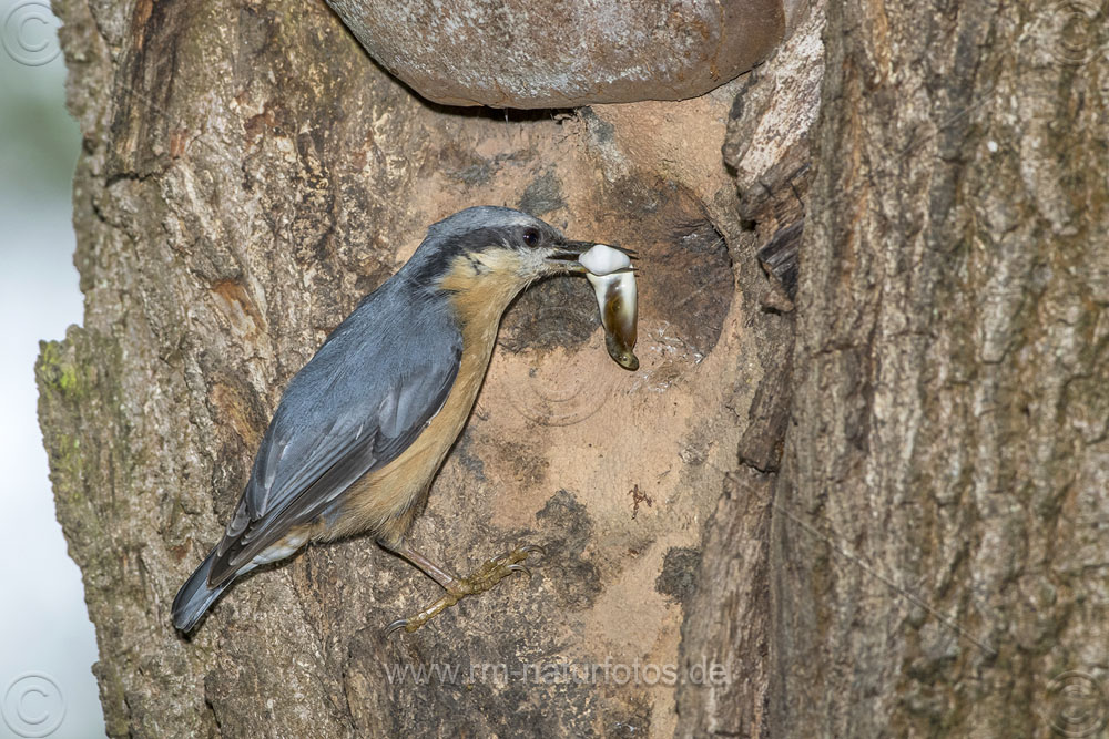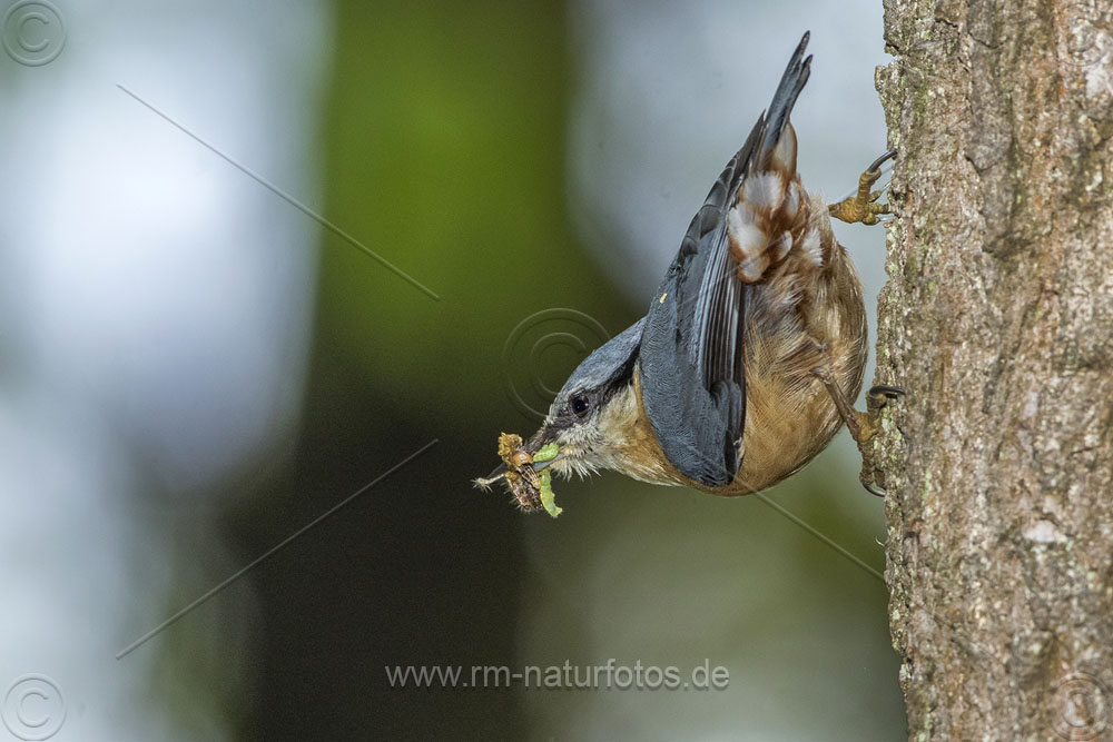 Kleiber (Sitta europaea) mit Futter für den Nachwuchs