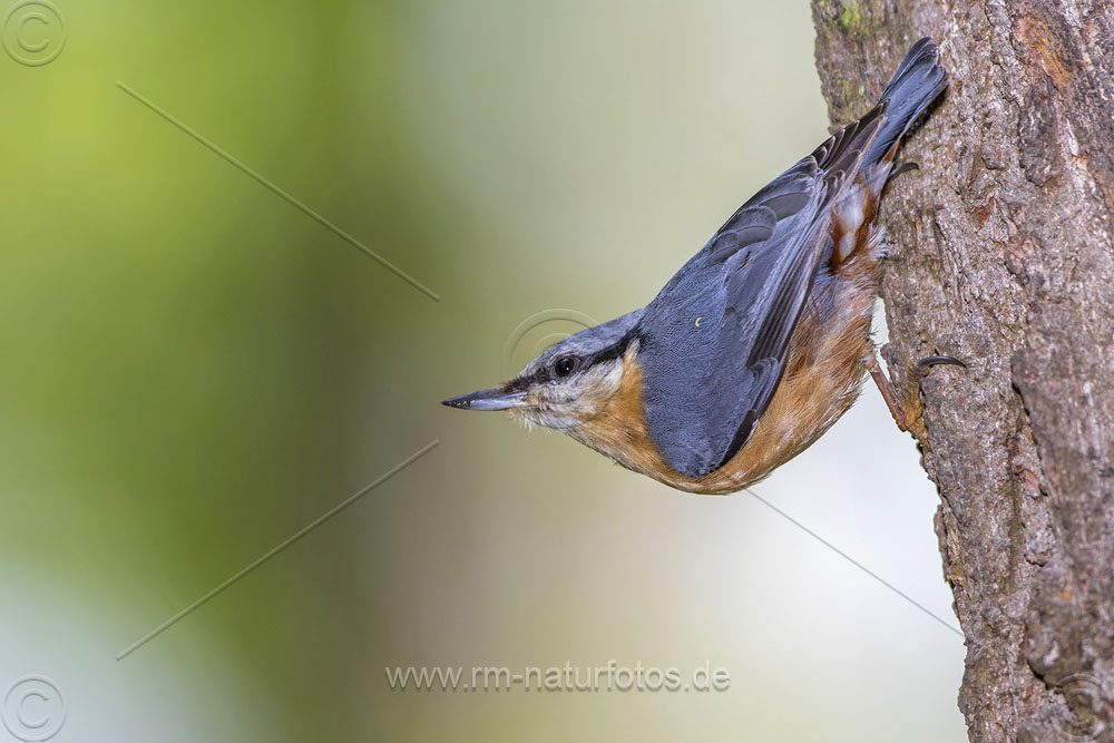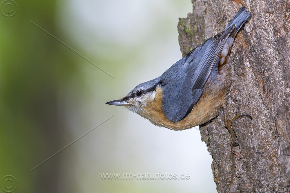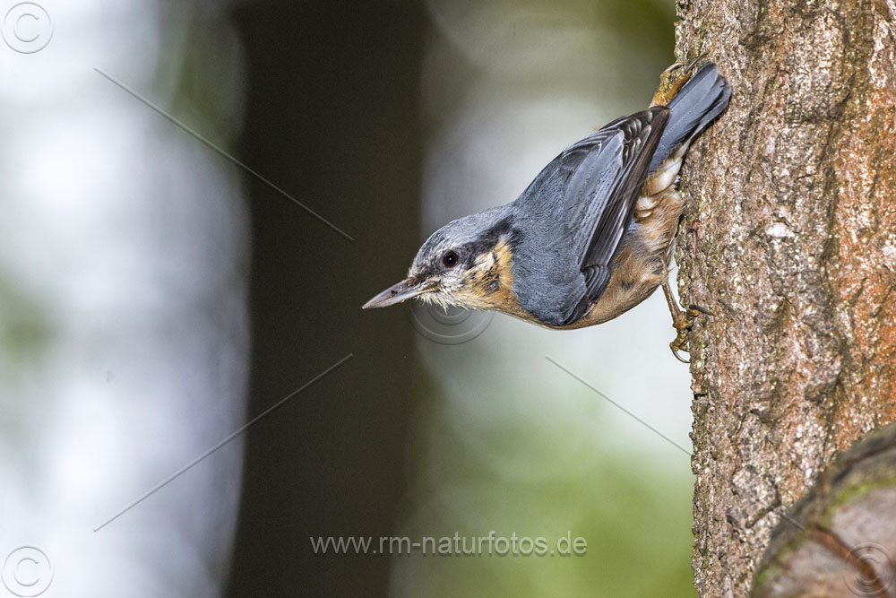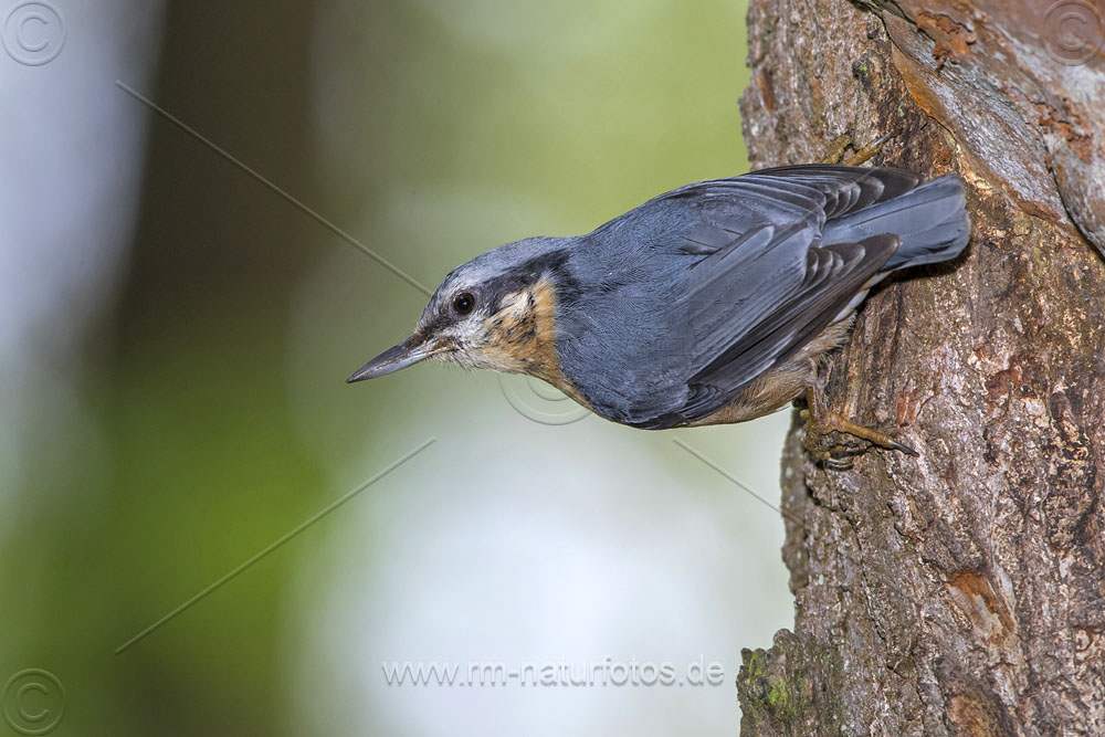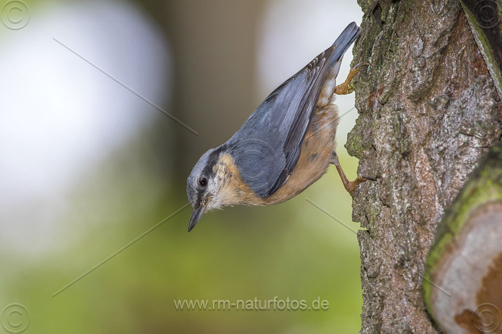 Kleiber (Sitta europaea) mit Lehm zugeklebte Höhle