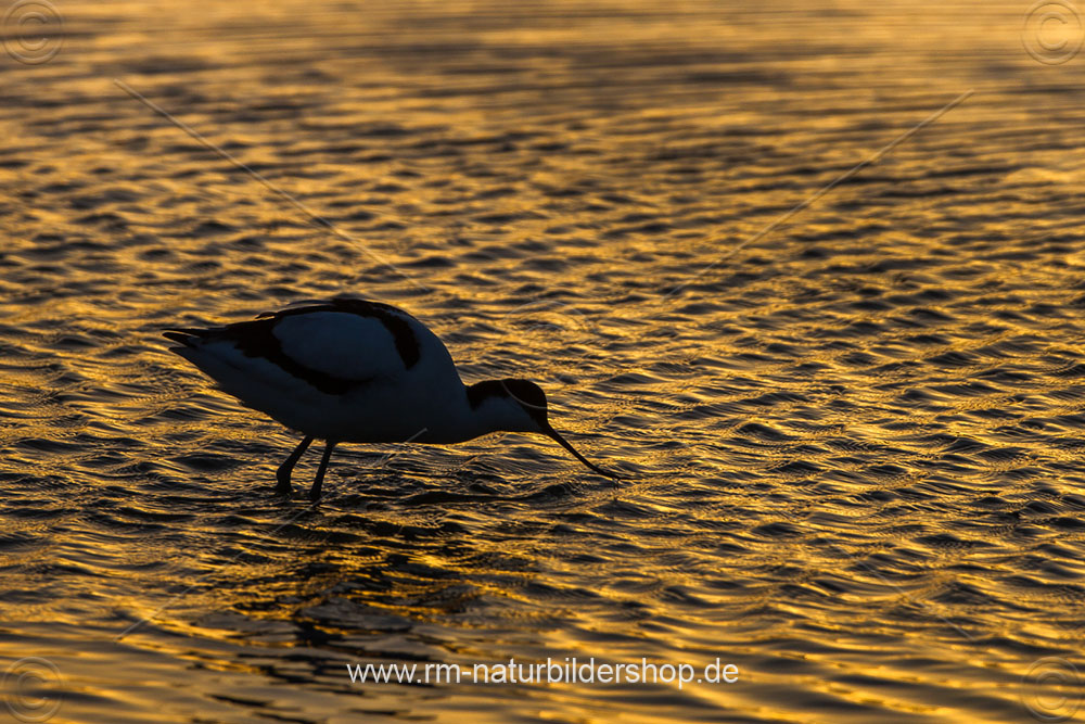 Säbelschnäbler (Recurvirostra avosetta) im Gegenlicht