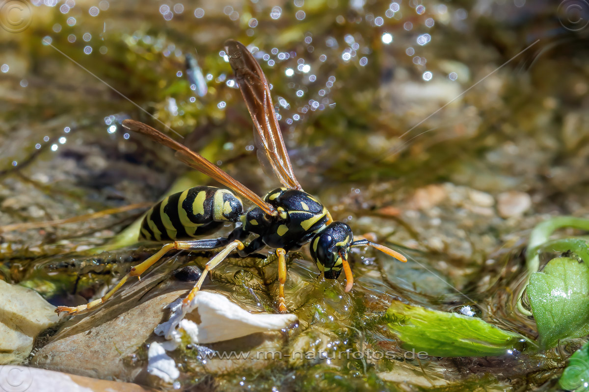 Haus-Feldwespe (Polistes dominula) oder Gallische Feldwespe holt Wasser