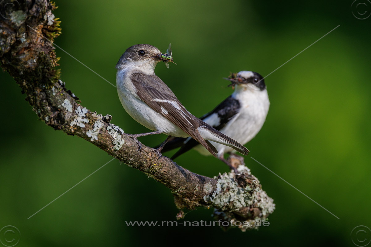 Halsbandschnäpper (Ficedula albicollis) Männchen und Weibchen