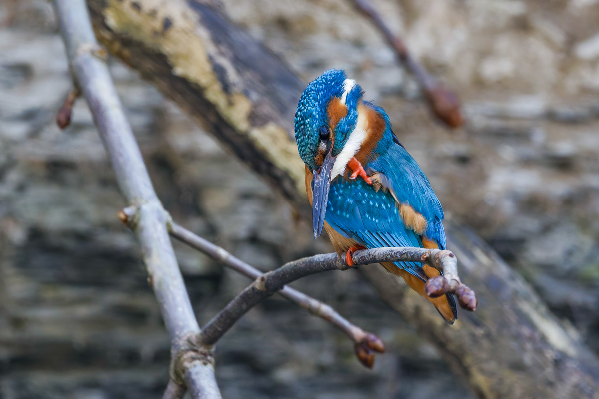 Das Männchen im Eisvogelrevier ist ständig unterwegs und fliegt sein Revier ab.Leider noch kein Weibchen in Sicht. Ein zweites Männchen wurde sofort verjagt. Gebirgsstelzen bauen auch schon an ihrem Nest.