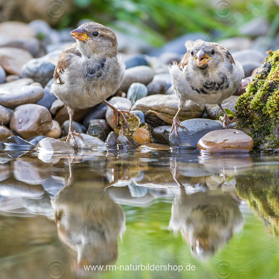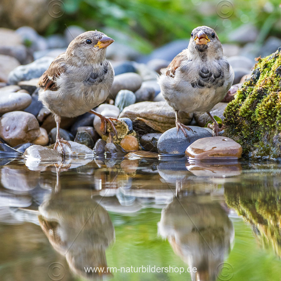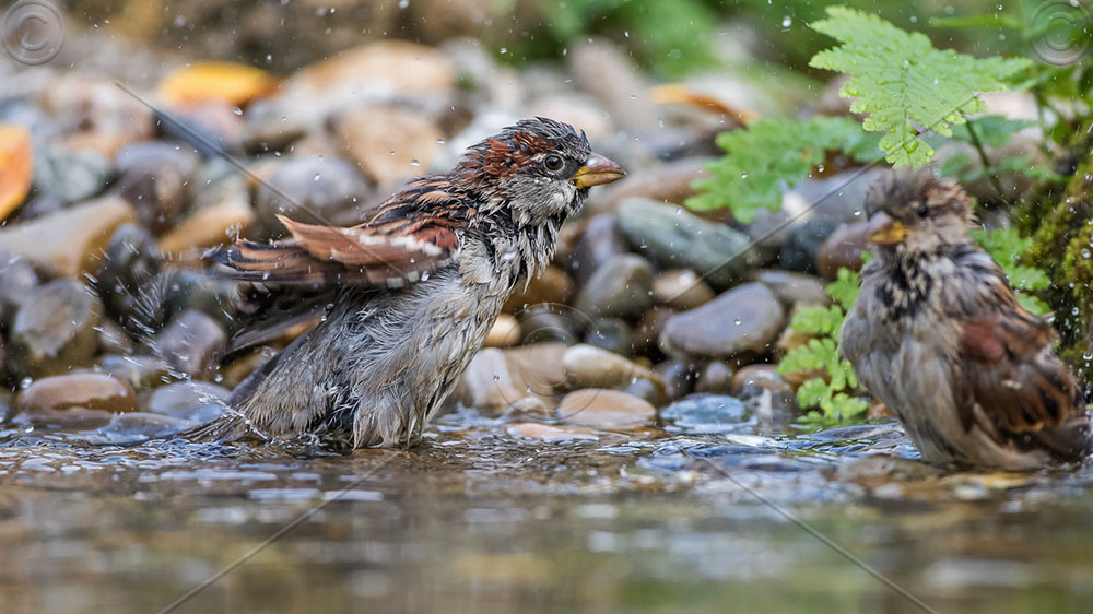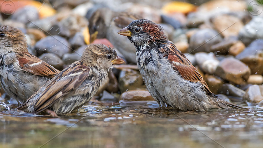 Haussperlinge (Passer domesticus) beim Baden