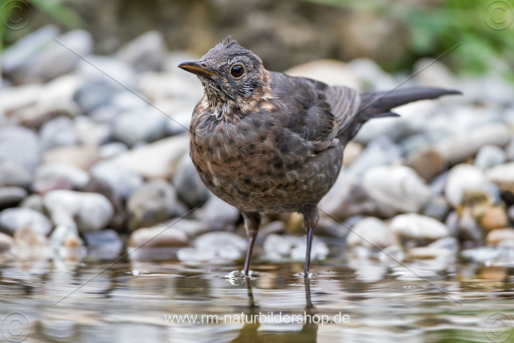 Amsel (Turdus merula) Weibchen in der Mauser