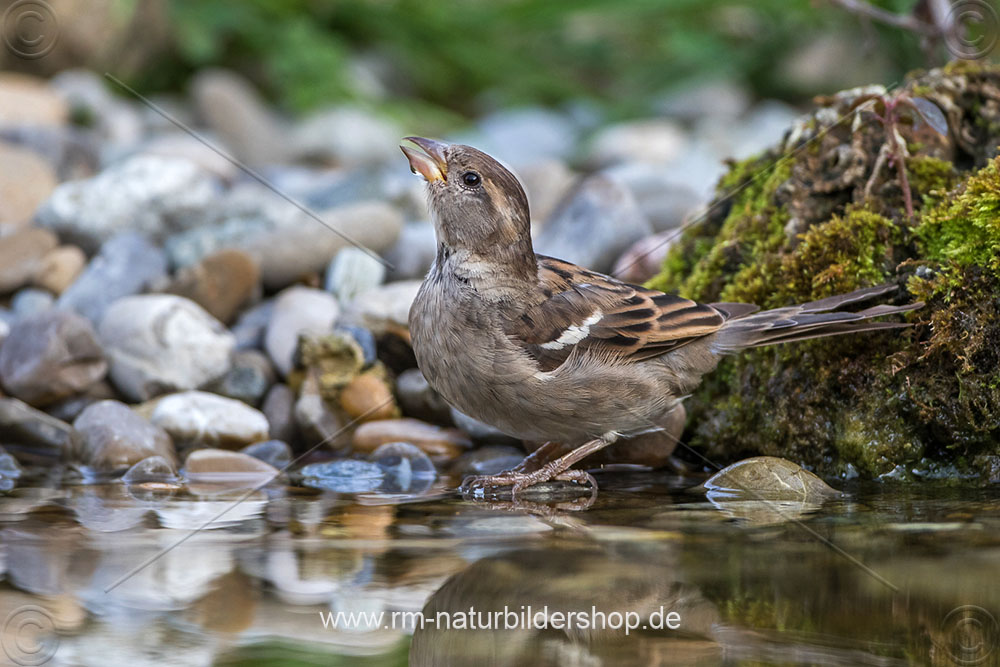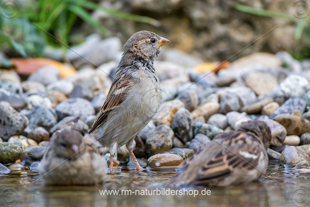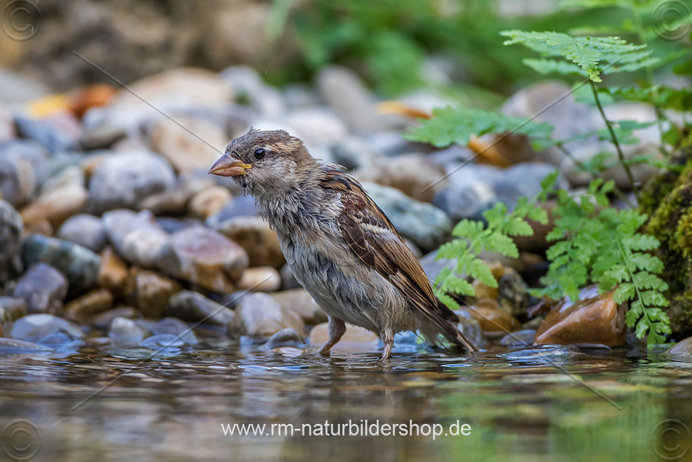 Haussperling (Passer domesticus) Weibchen nach dem Baden