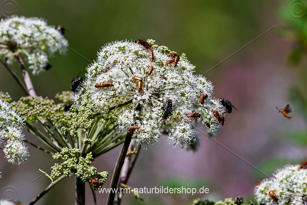 Wald-Engelwurz (Angelica sylvestris) mit Insekten
