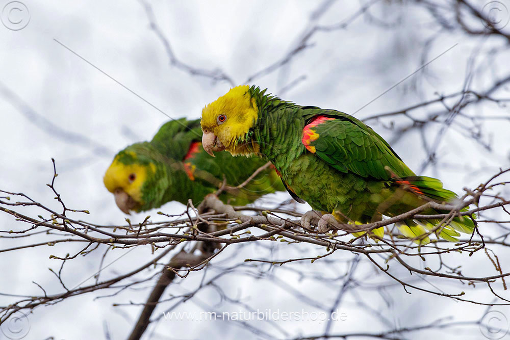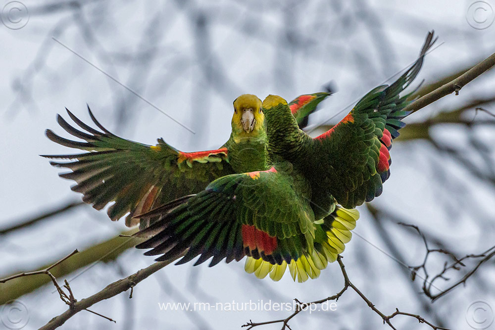 Gelbkopfamazonen (Amazona oratrix) streiten sich