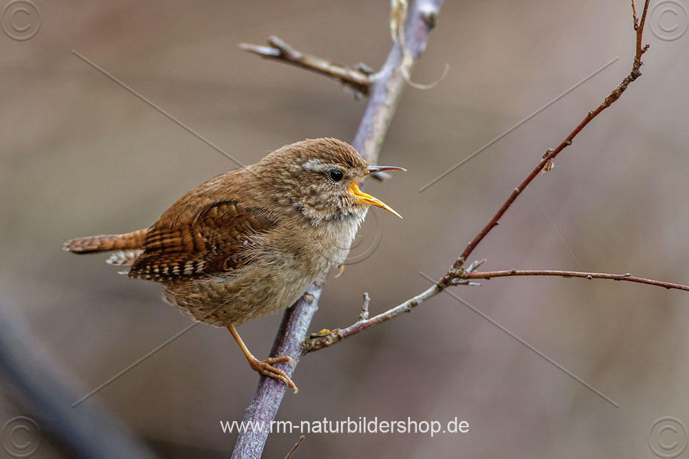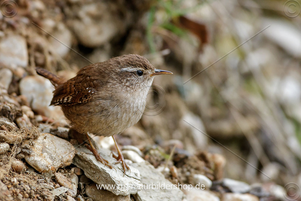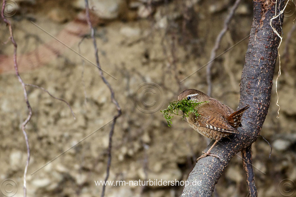 Zaunkönig (Troglodytes troglodytes) mit Nistmaterial