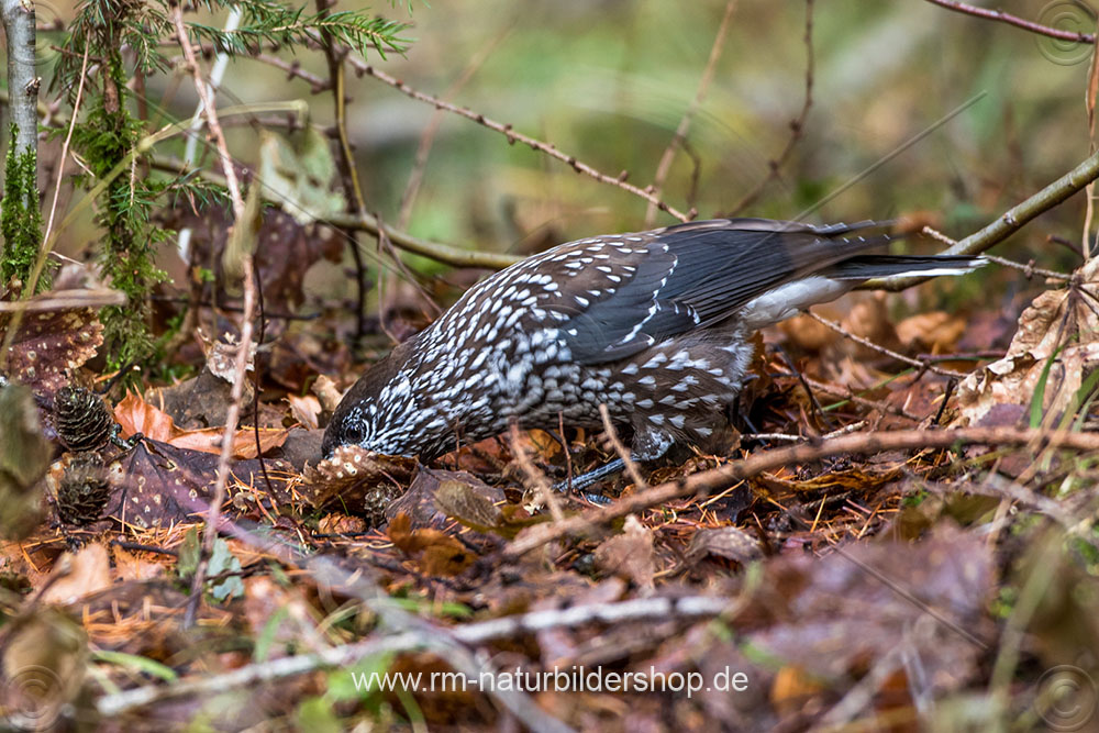 Tannenhäher (Nucifraga caryocatactes) versteckt Nüsse