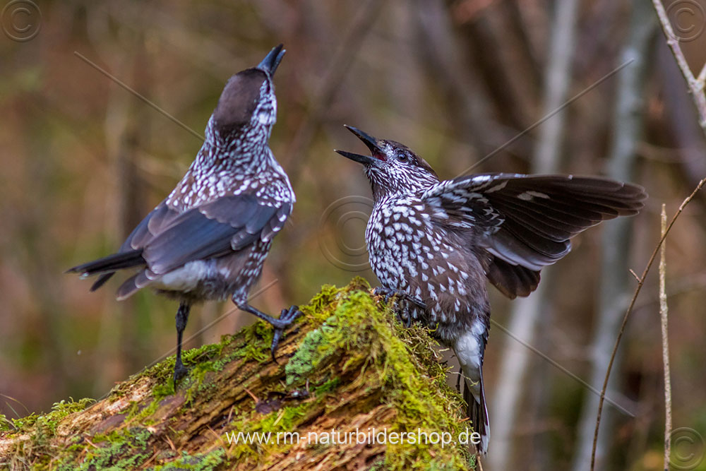 Tannenhäher (Nucifraga caryocatactes) bettelt nach Nahrung