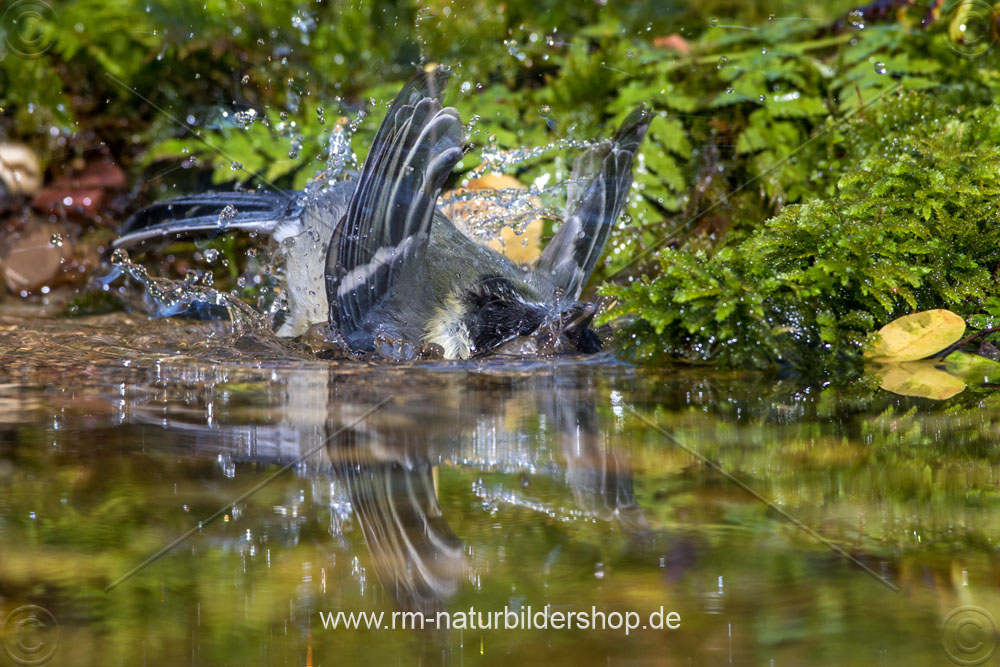 Badende Kohlmeise (parus major)