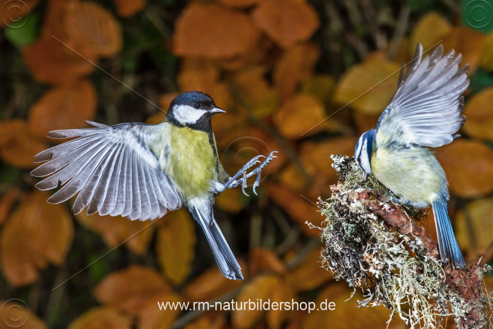 Kohlmeise (parus major) und Blaumeise