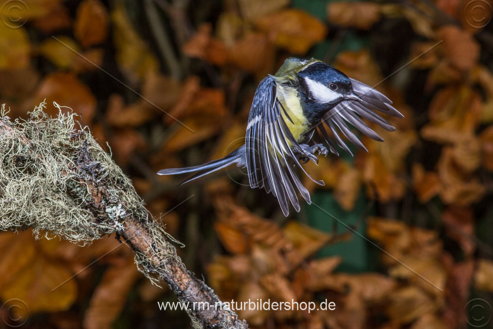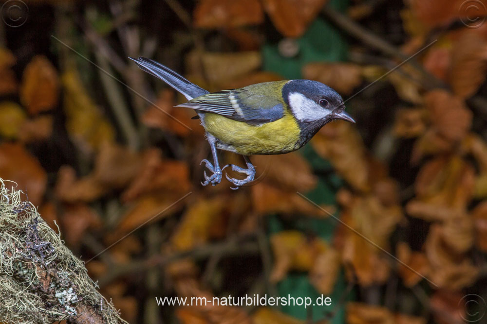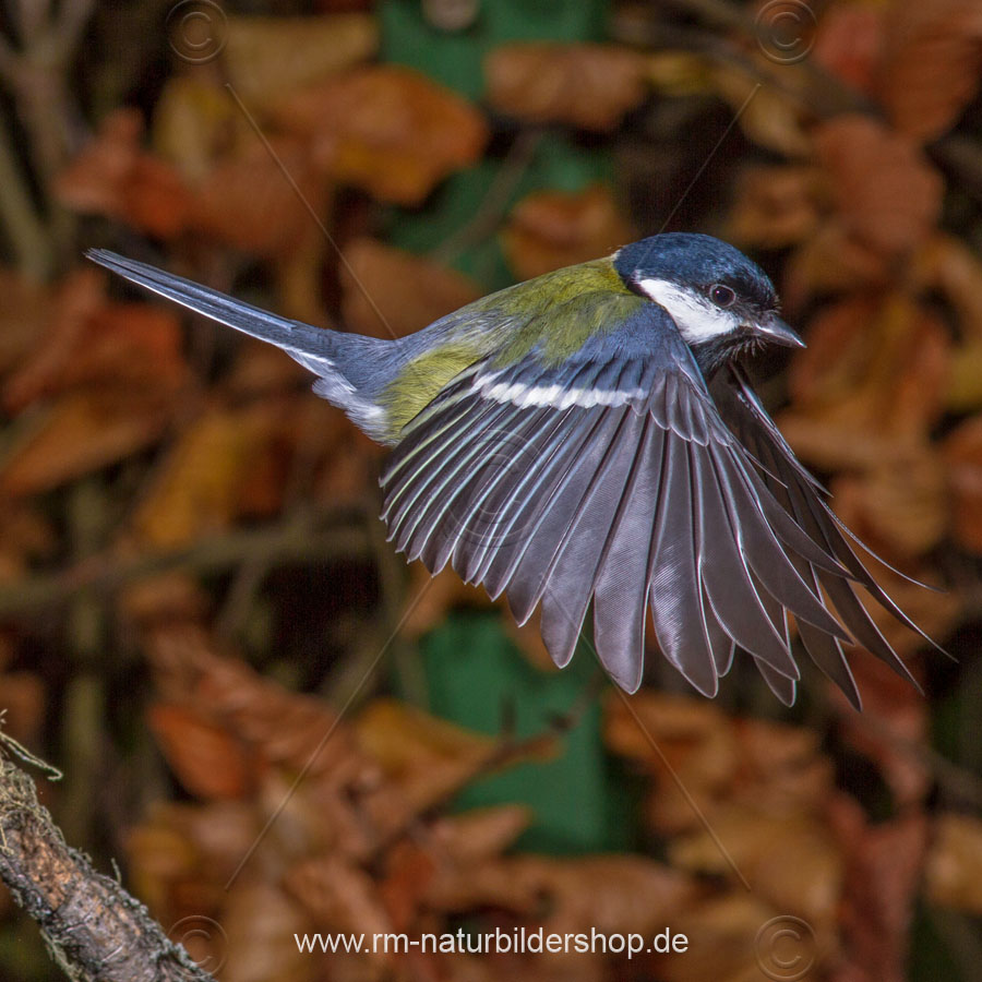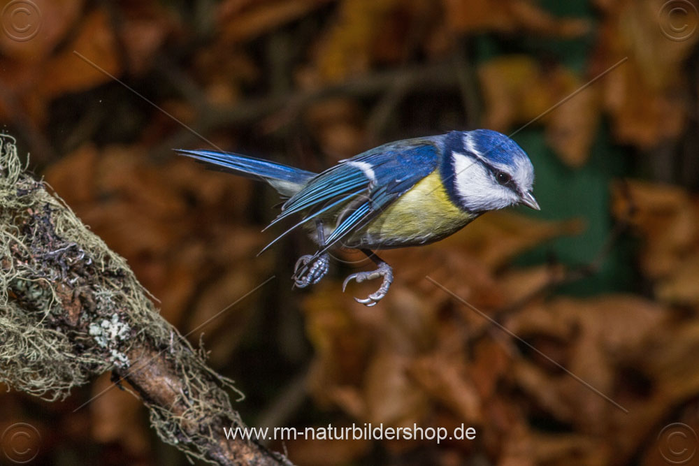 Blaumeise (Cyanistes caeruleus) beim Landeanflug