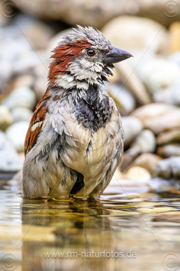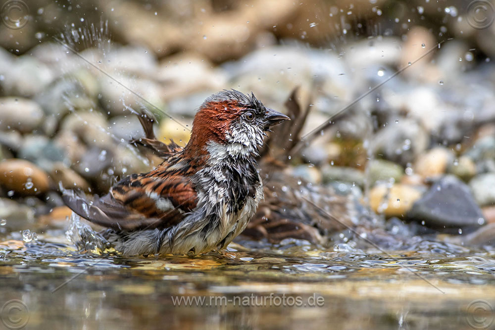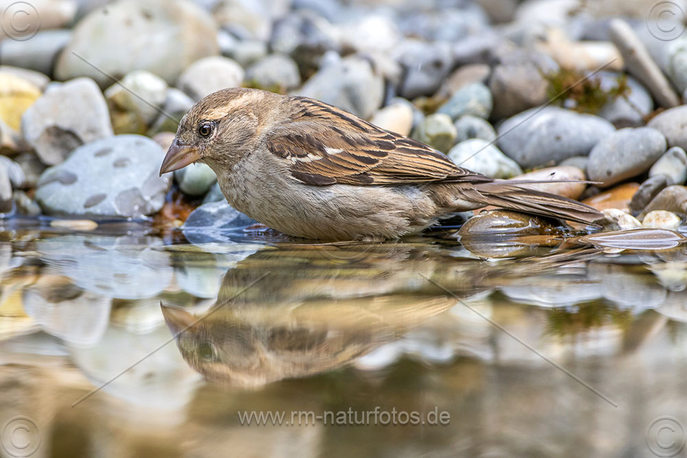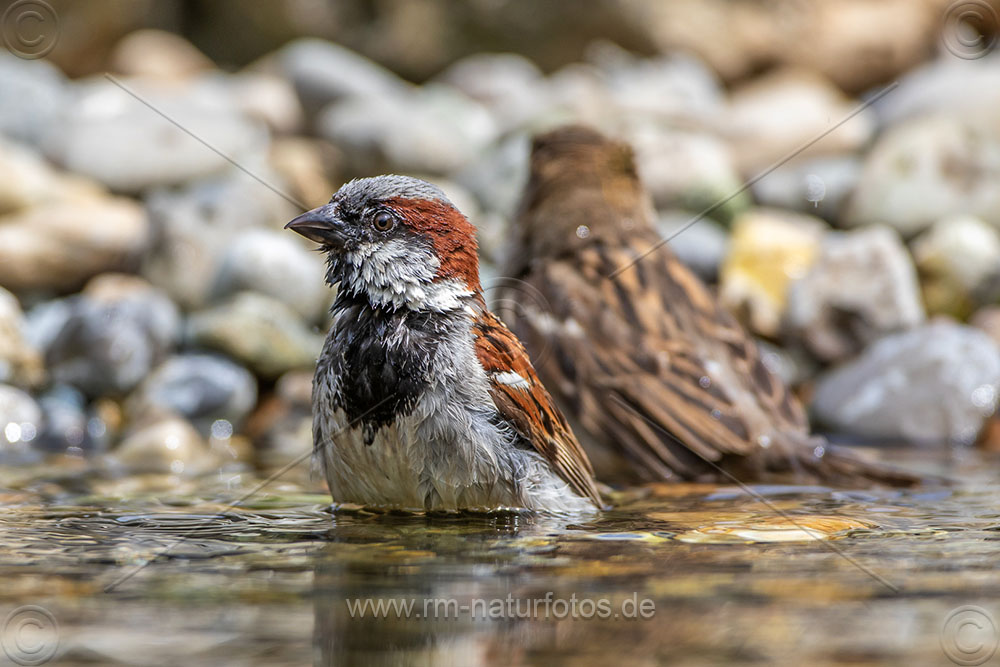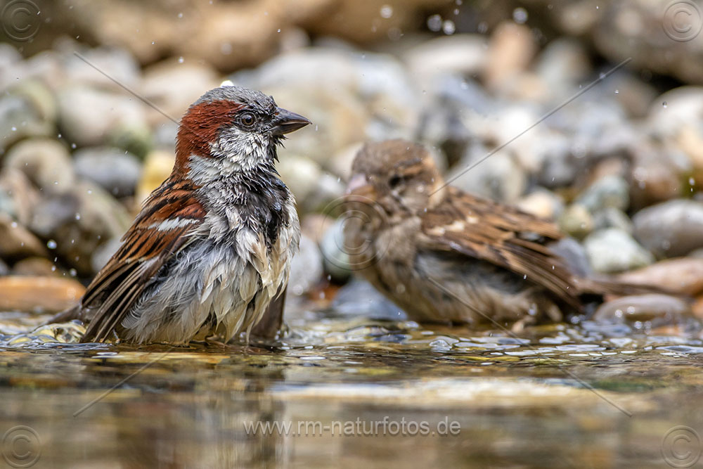 Haussperling (Passer domesticus) Männchen und Weibchen