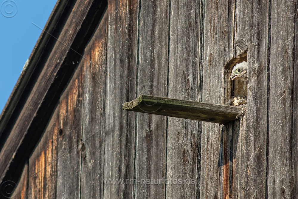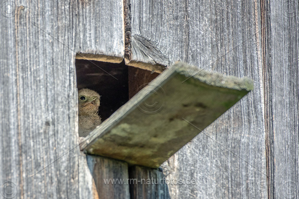 Turmfalke (Falco tinnunculus) Jungvogel im Nistkasten