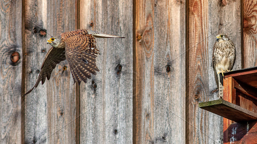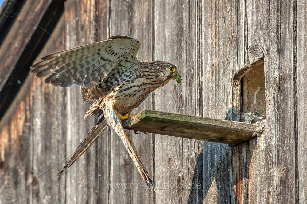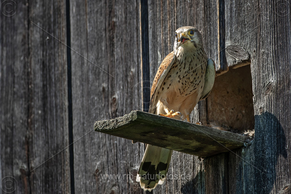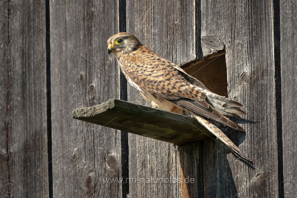 Turmfalke (Falco tinnunculus) Männchen am Nistkasten