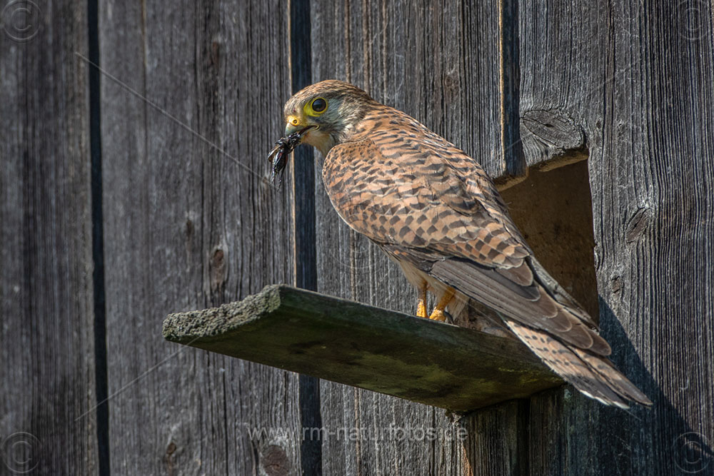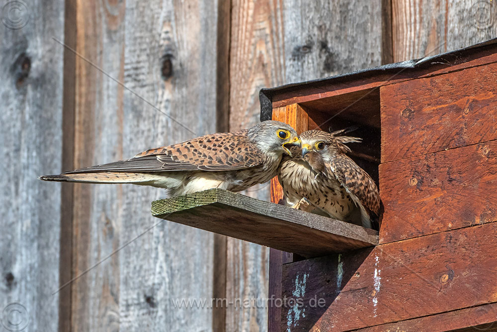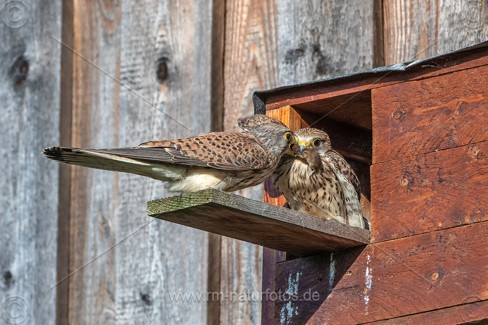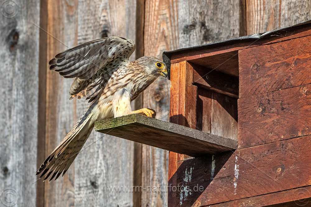 Turmfalke (Falco tinnunculus) Weibchen am Nistkasten