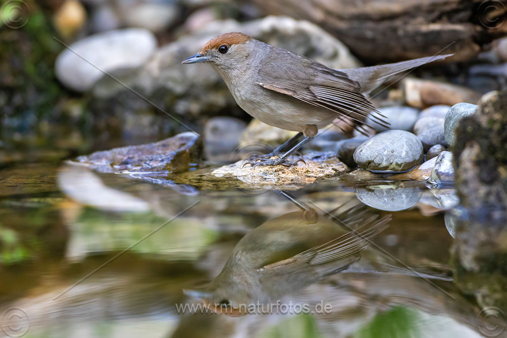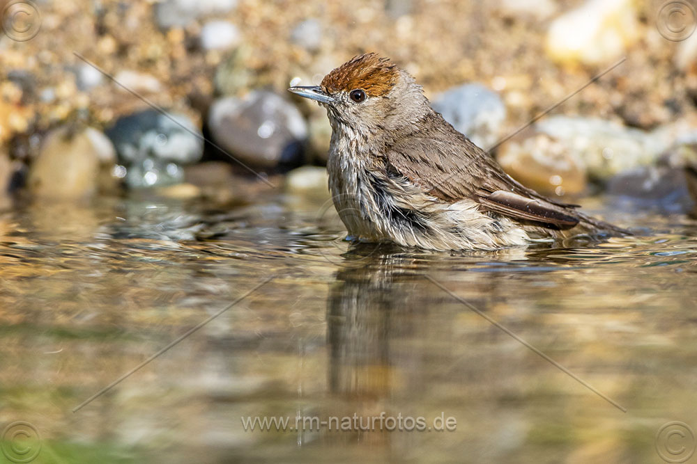Mönchsgrasmücke (Sylvia atricapilla) Weibchen, badend
