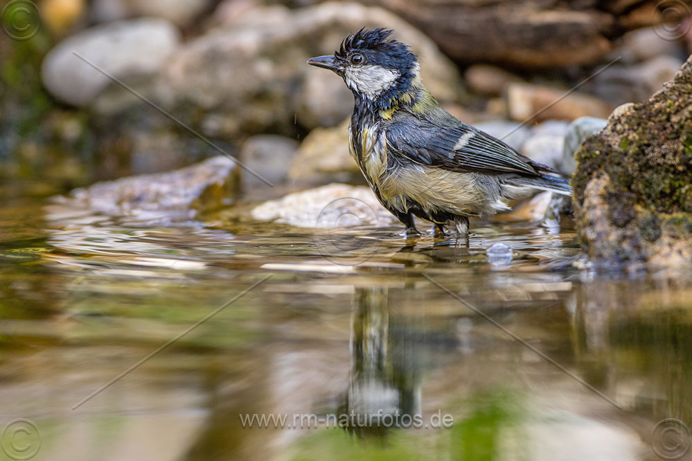 Mönchsgrasmücke (Sylvia atricapilla) Männchen, badend