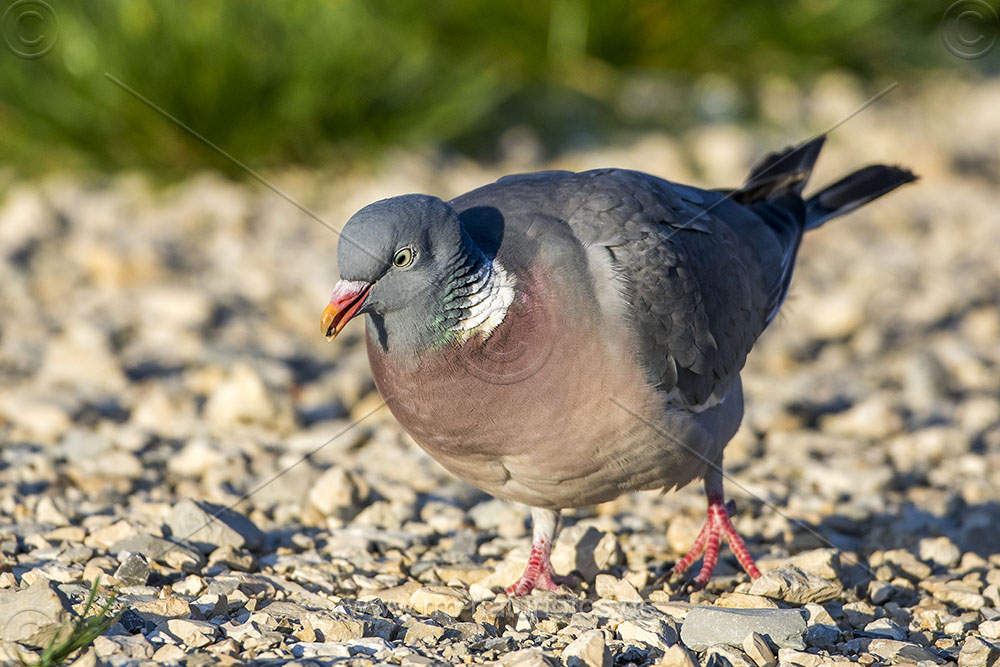 Ringeltaube (Columba palumbus) nimmt Steinchen auf
