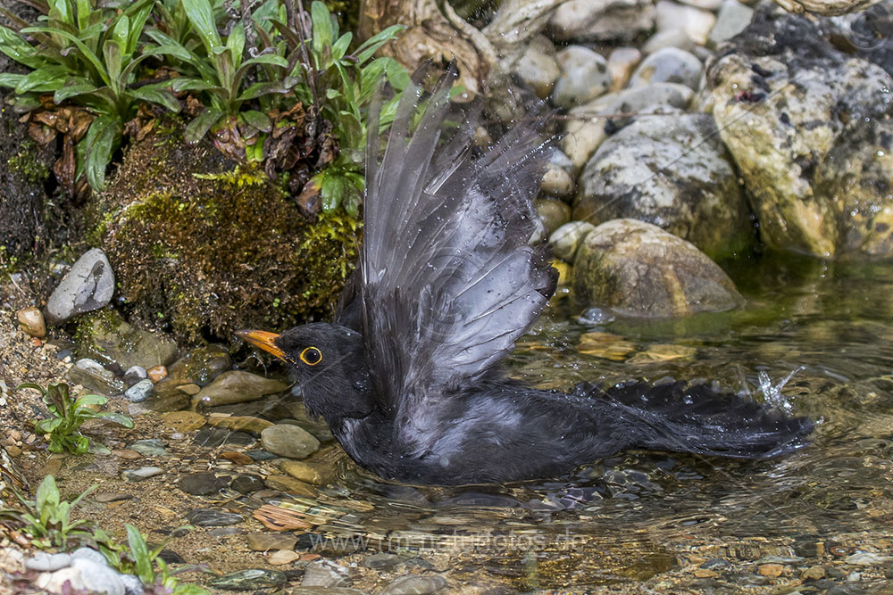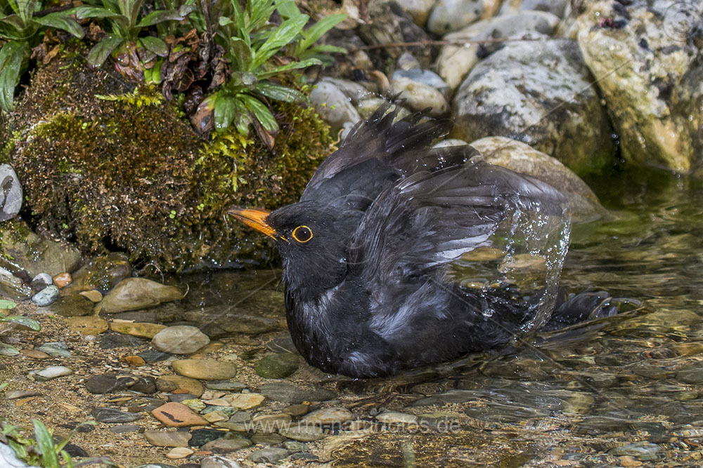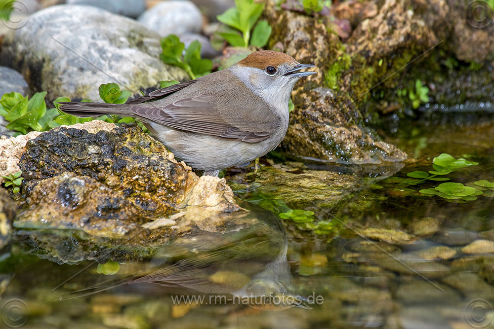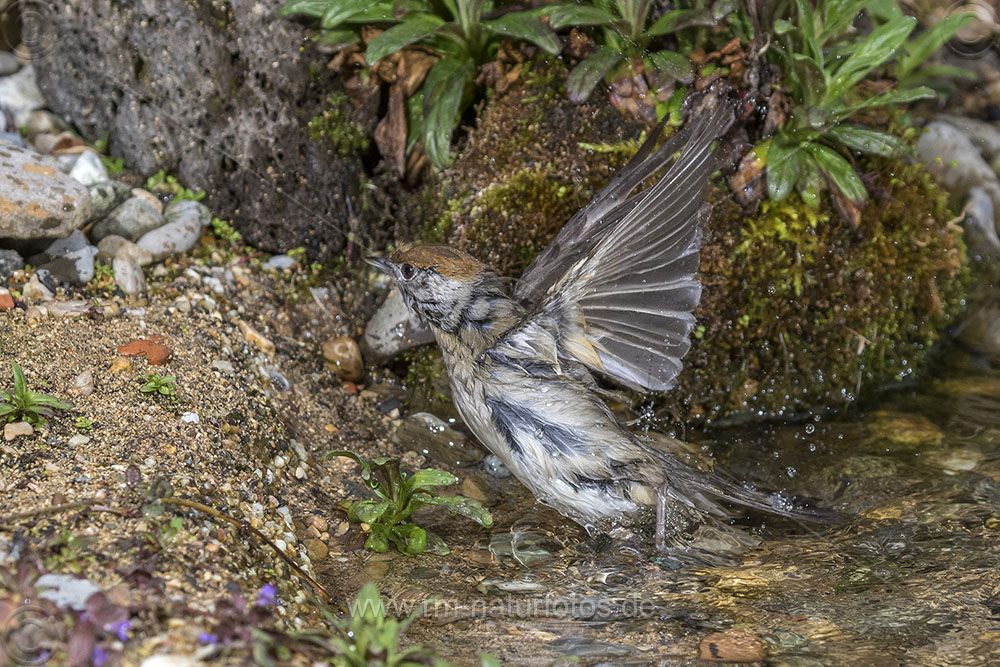 Mönchsgrasmücke (Sylvia atricapilla) Männchen, badend