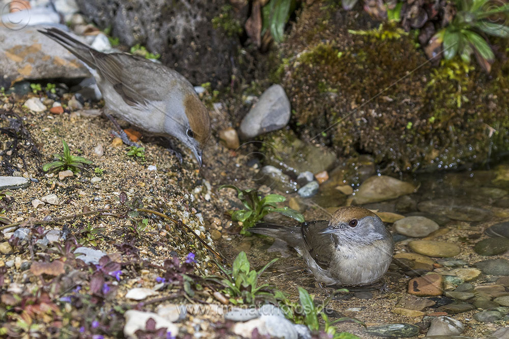 Mönchsgrasmücke (Sylvia atricapilla) Weibchen, badend