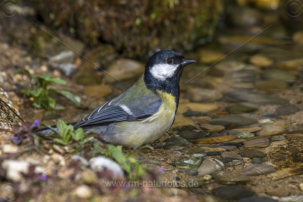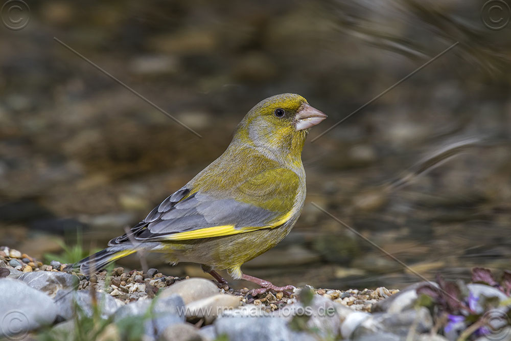 Grünfink (Carduelis chloris) Männchen am Vogelbad