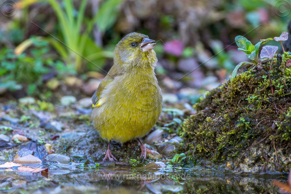Grünfink (Carduelis chloris) an Wasserstelle