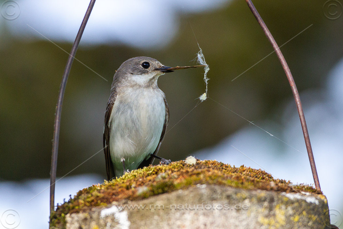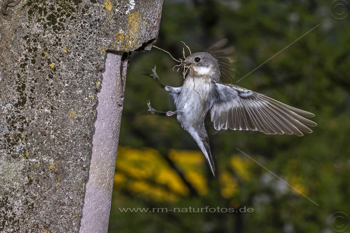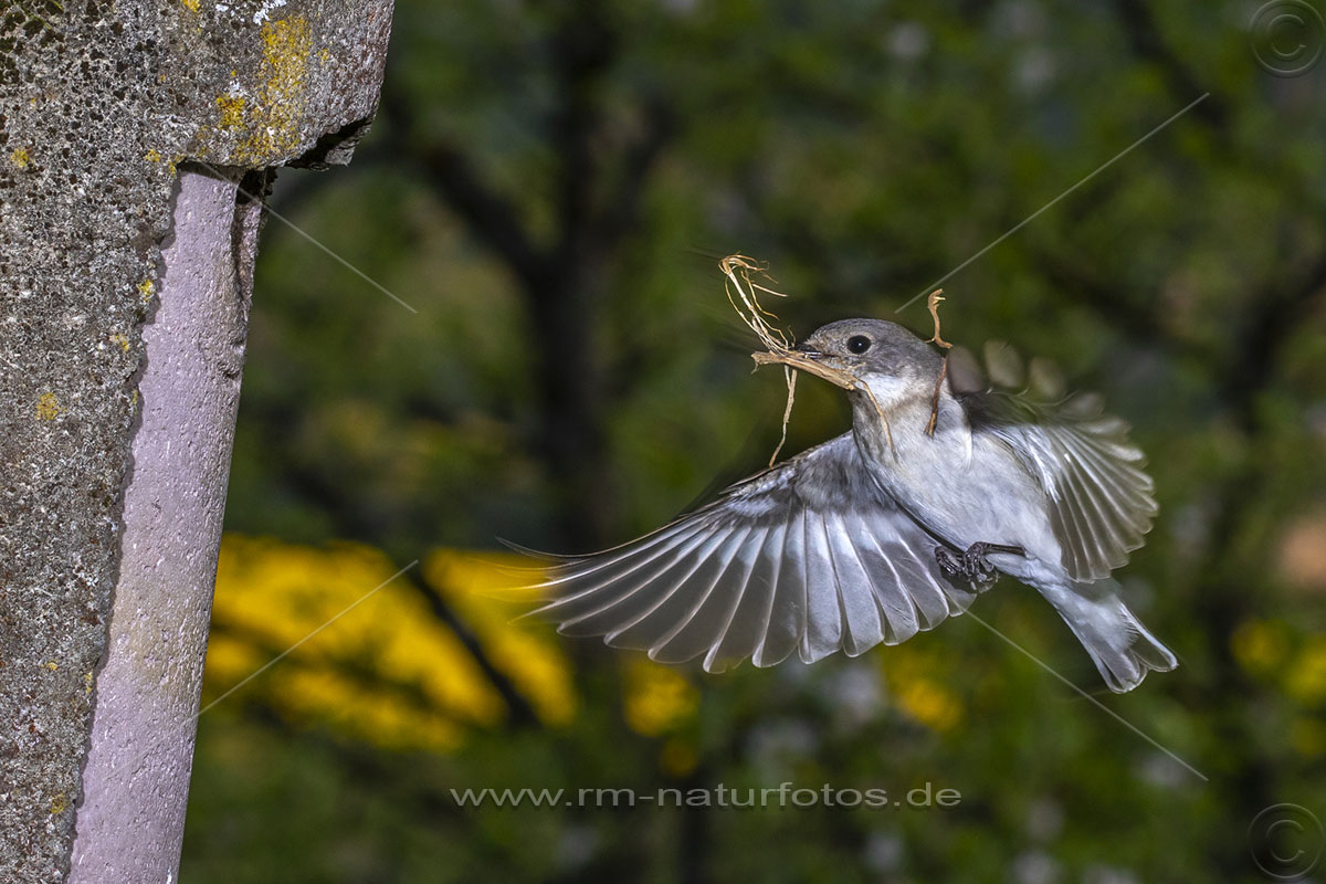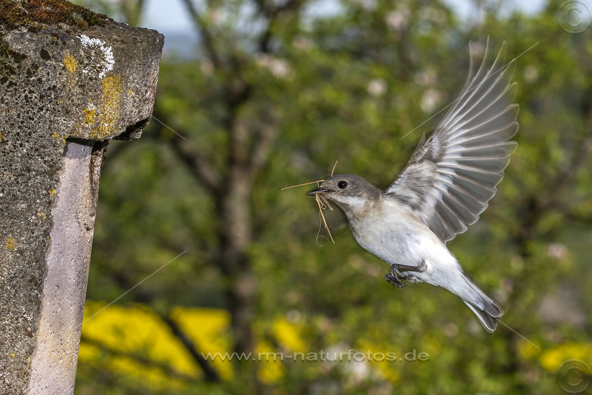 Halsbandschnäpper (Ficedula albicollis) Weibchen mit Nistmaterial