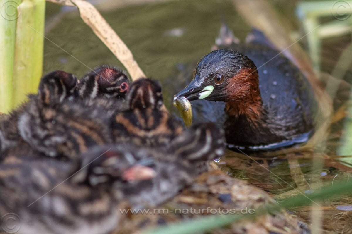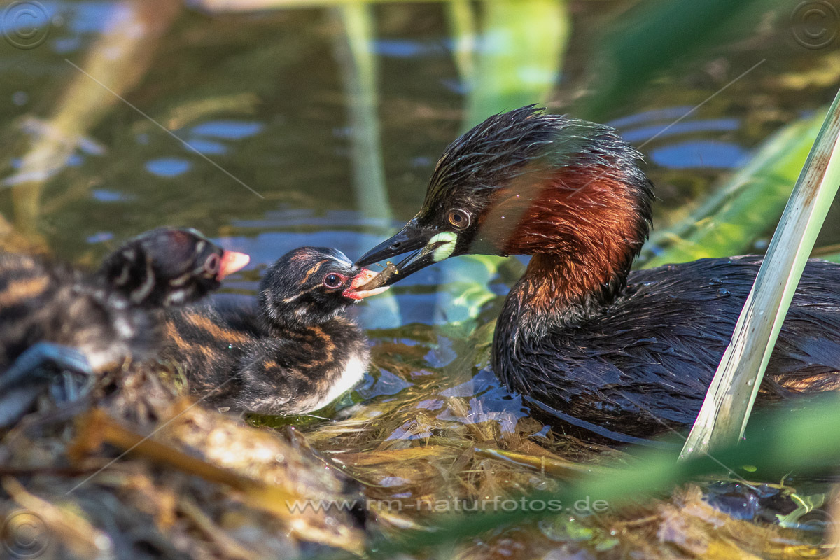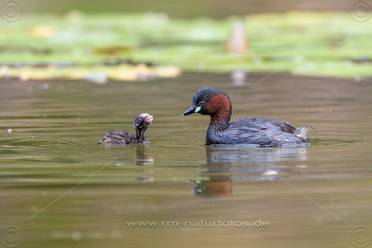 Zwergtaucher (Tachybaptus ruficollis) mit Jungen