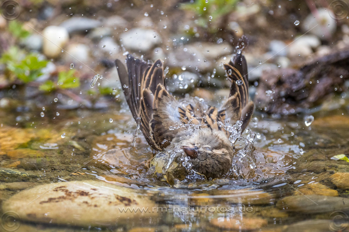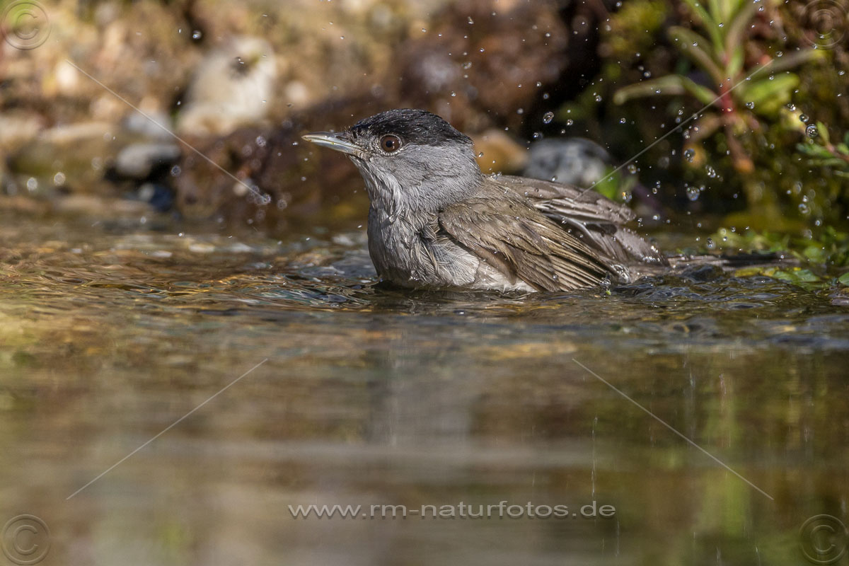 Mönchsgrasmücke (Sylvia atricapilla) Männchen, badend