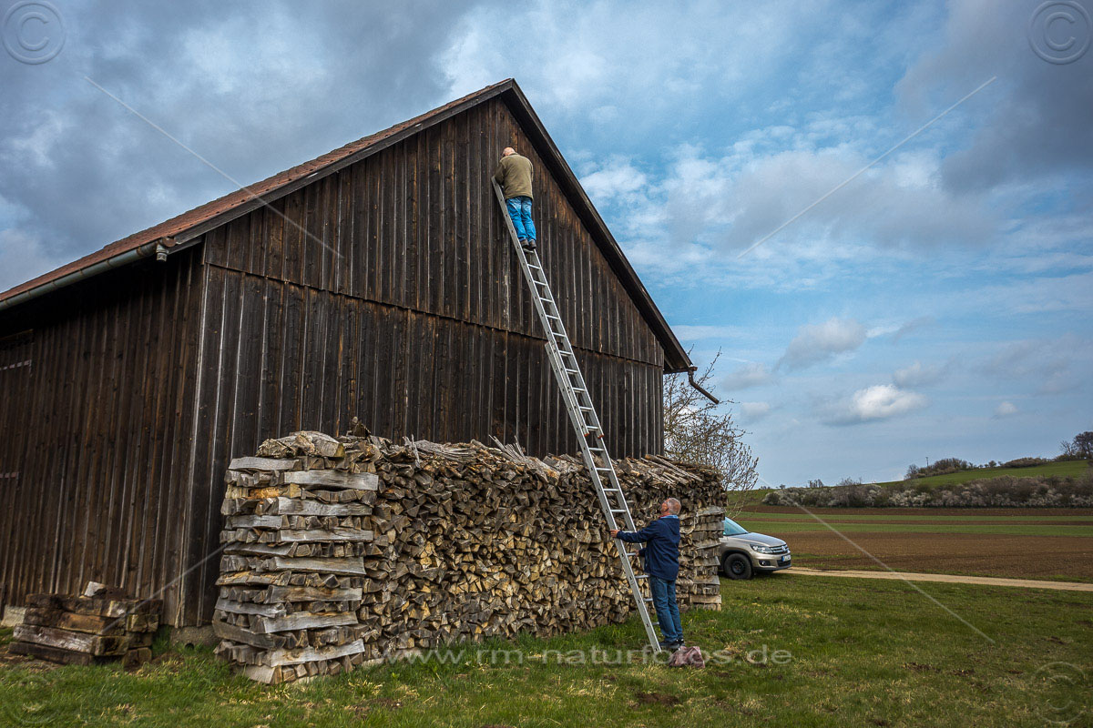 Anbringen eines Landebrettes am Turmfalkenkasten